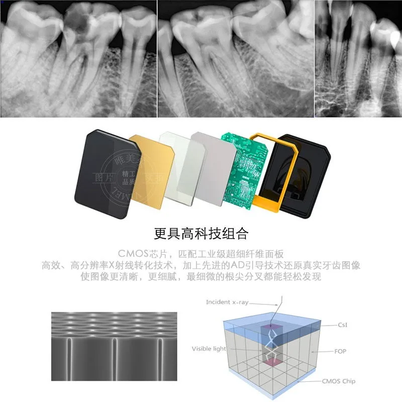Более высокотехнологичное сочетание:Чип CMOS, подходящая промышленная панель из микрофибры, высокая эффективность и технология преобразования рентгеновского излучения с высоким разрешением, а также передовые технологии AD наведения для восстановления реальных изображений зубов, чтобы изображения были более четкими и тонкими, и можно было легко найти самую маленькую apical bifurcation.
