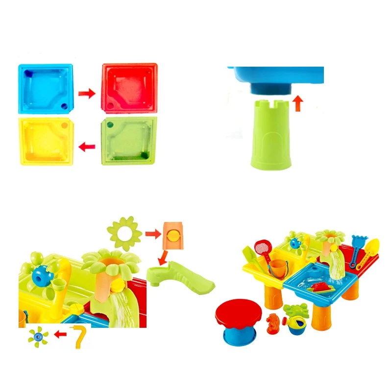 3. Легко собрать: Этот песочный водный стол легко собрать. Просто вставьте 4 ножки в место. Дети могут даже самостоятельно создать этот стол для занятий. Также легко разобрать для хранения. Может быть доставлен на пляж или на задний двор для игр на открытом воздухе.