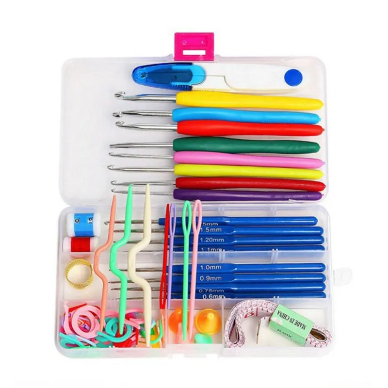 Посылка включает:1x57 шт набор крючков для вязания крючком с коробкой
