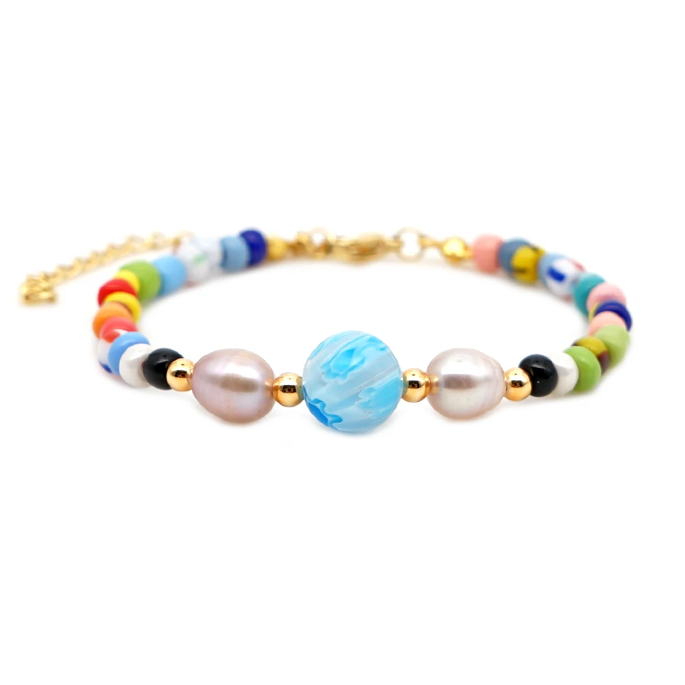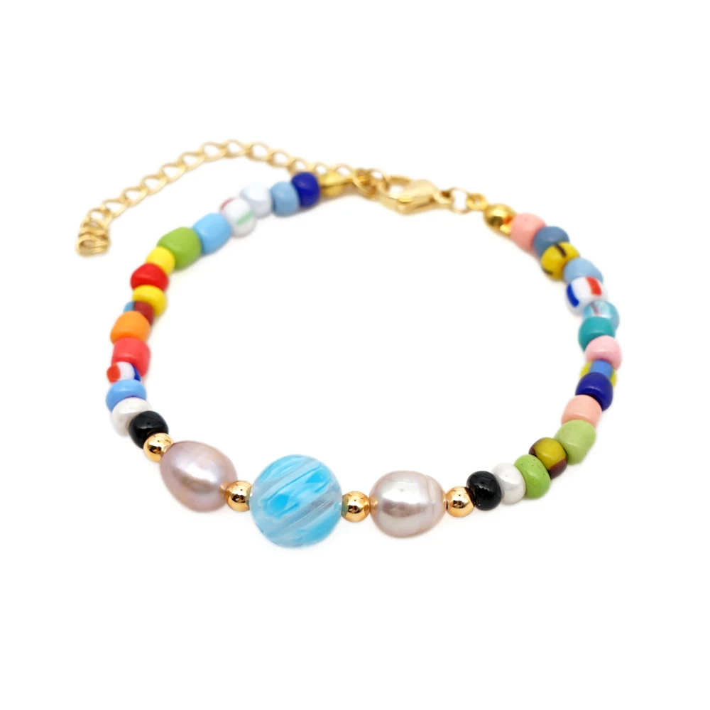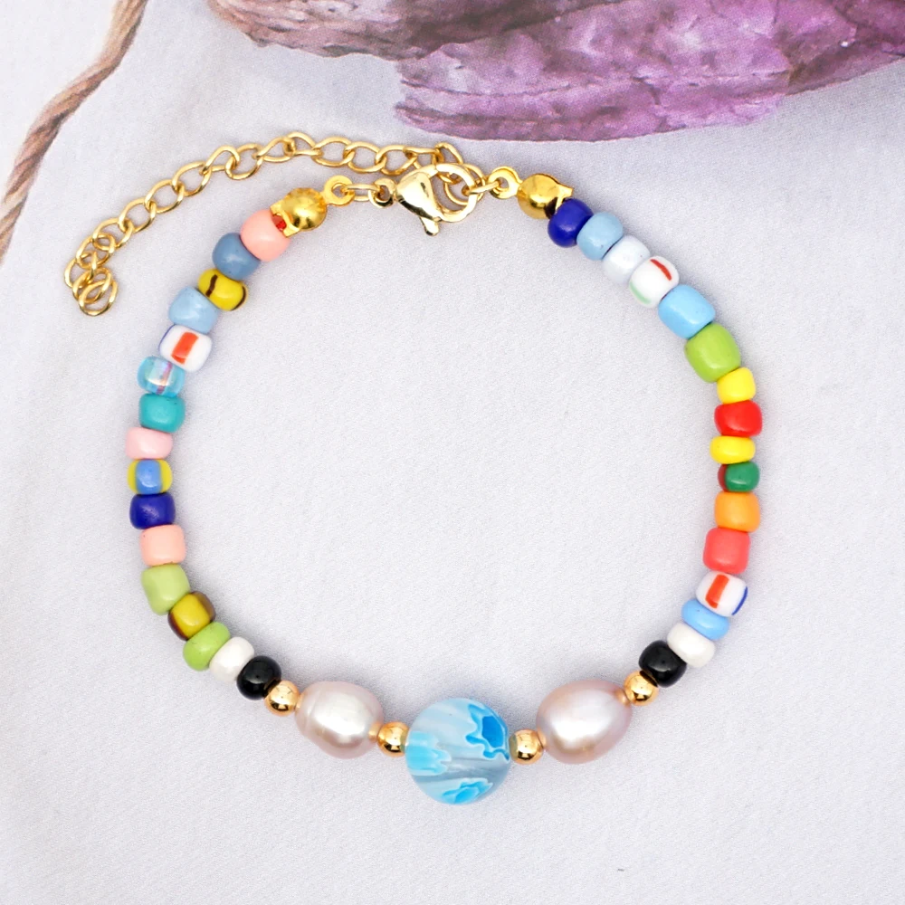 Женский браслет с жемчугом в виде свежей воды, радужные браслеты, женский подарок, летние ювелирные изделия в стиле бохо, браслеты ручной работы, тянущиеся