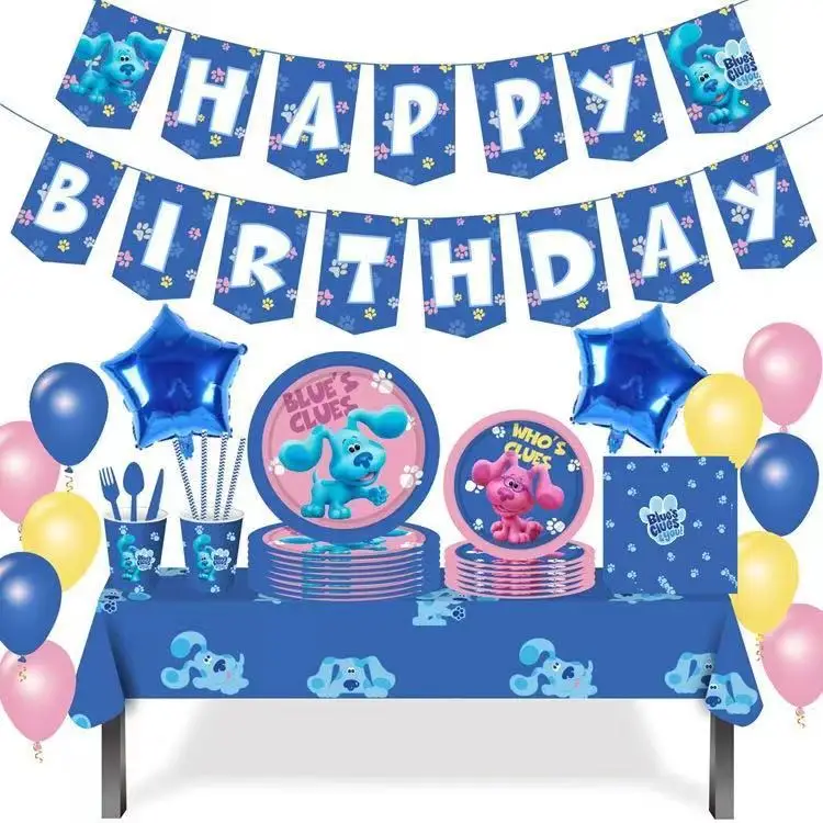 Одноразовая посуда с изображением мультяшной собаки, голубые подсказки, кружки, тарелки, салфетки, детские принадлежности для дня рождения, вечеринки, милые домашние питомцы, Декор