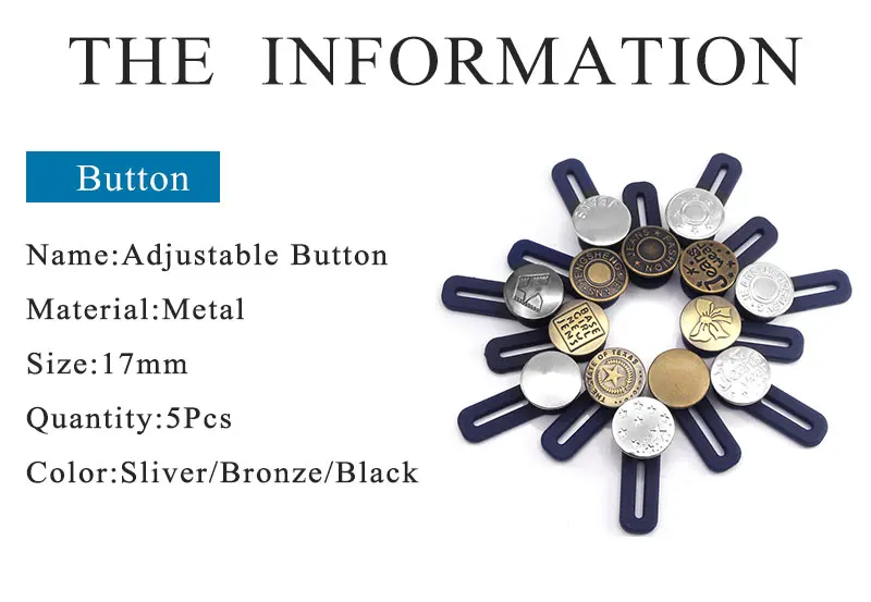 Название продукта: металлическая кнопка Материал: металл Размер: 17 мм Количество: 5 шт. Цвет: как на картинке Послепродажное обслуживание: Если у продукта есть какие-либо проблемы, просто свяжитесь с нами или оставить нам сообщение в любое время.