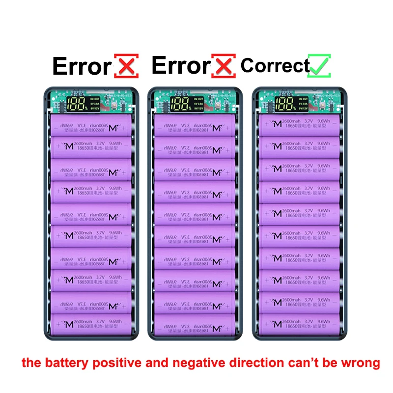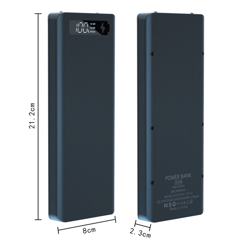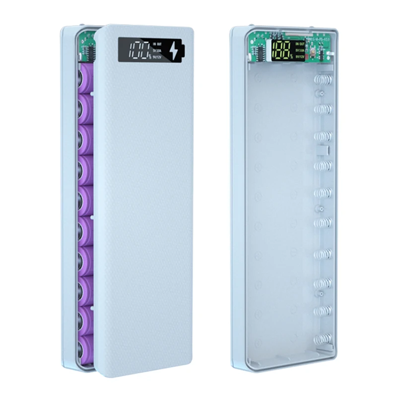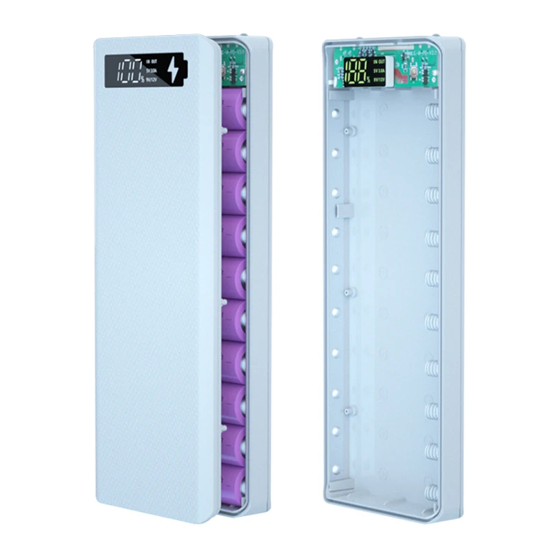 Съемный чехол для аккумулятора 10*18650, внешний аккумулятор, двойной USB ЖК-дисплей, поддержка быстрого зарядного устройства, держатель для аккумулятора