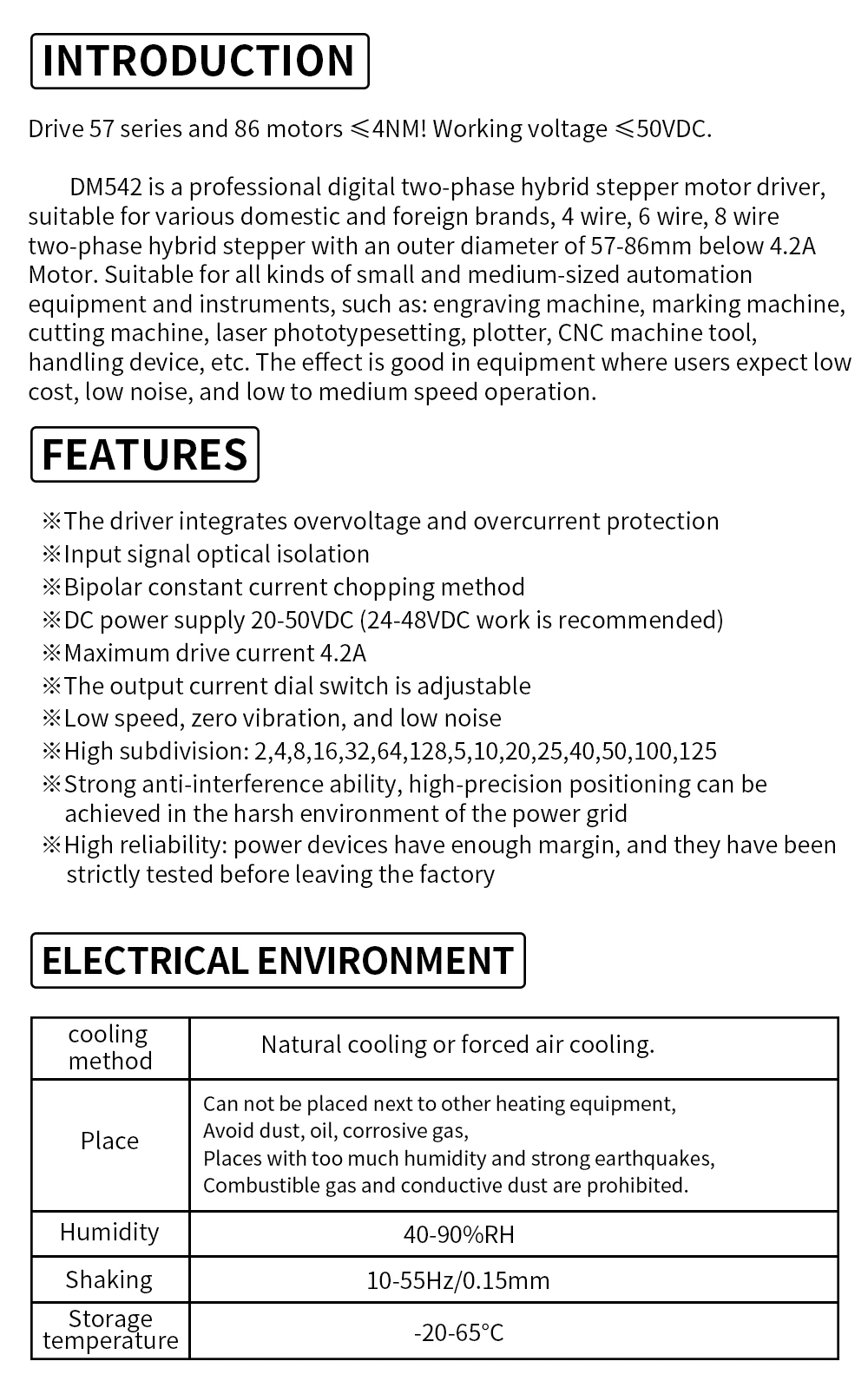 DM542 шаговый мотор контроллер 2-фазный цифровой Драйвер шагового двигателя 18-48 В постоянного тока Макс. 4.2A для 57 86 мотор с последовательным возбуждением