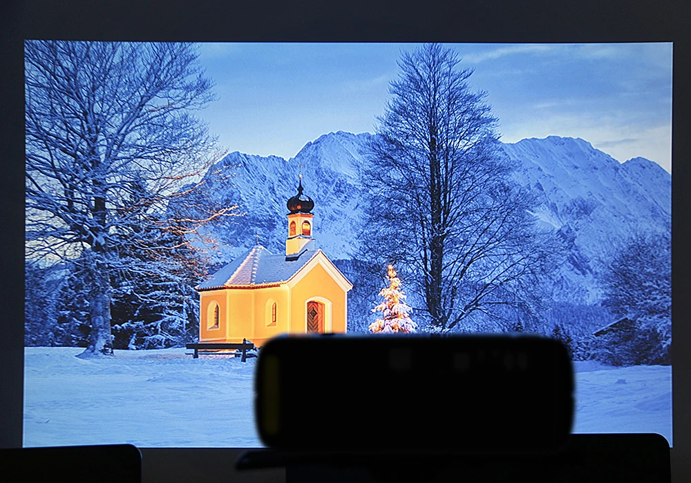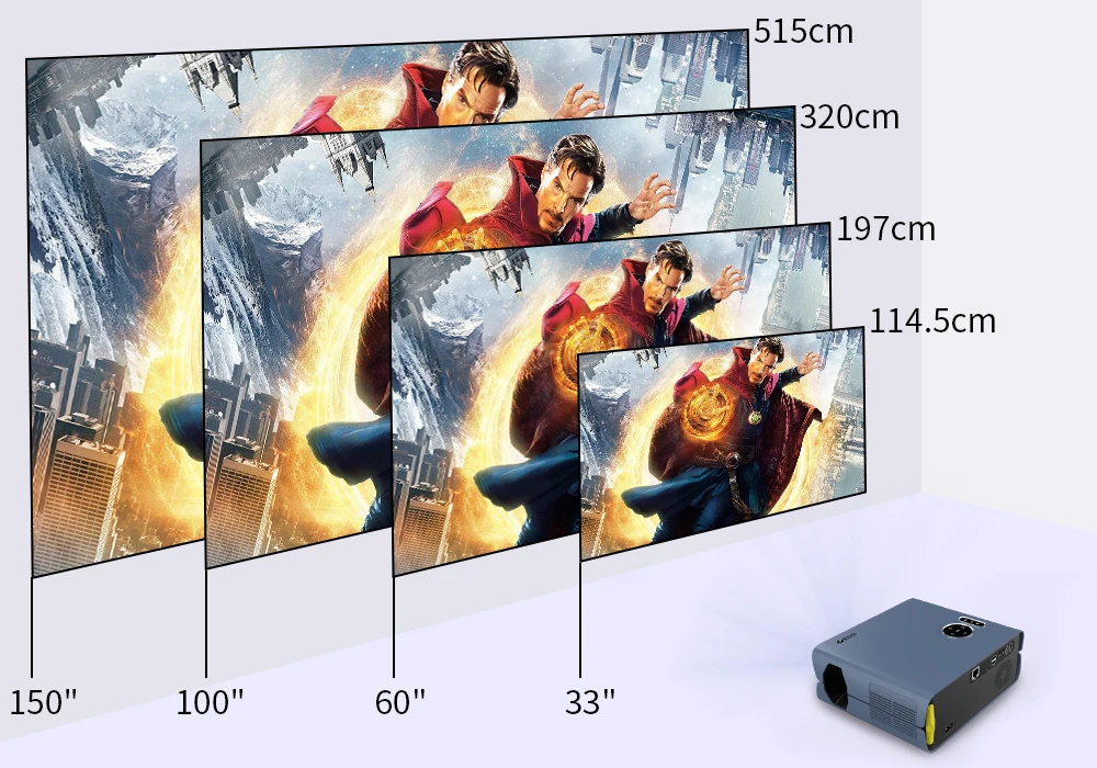 Он может отображаться на большом экране, может проецировать от 33 до 150 дюймов. Он сохраняет высокое качество изображения, когда он проецирует на новое расстояние.