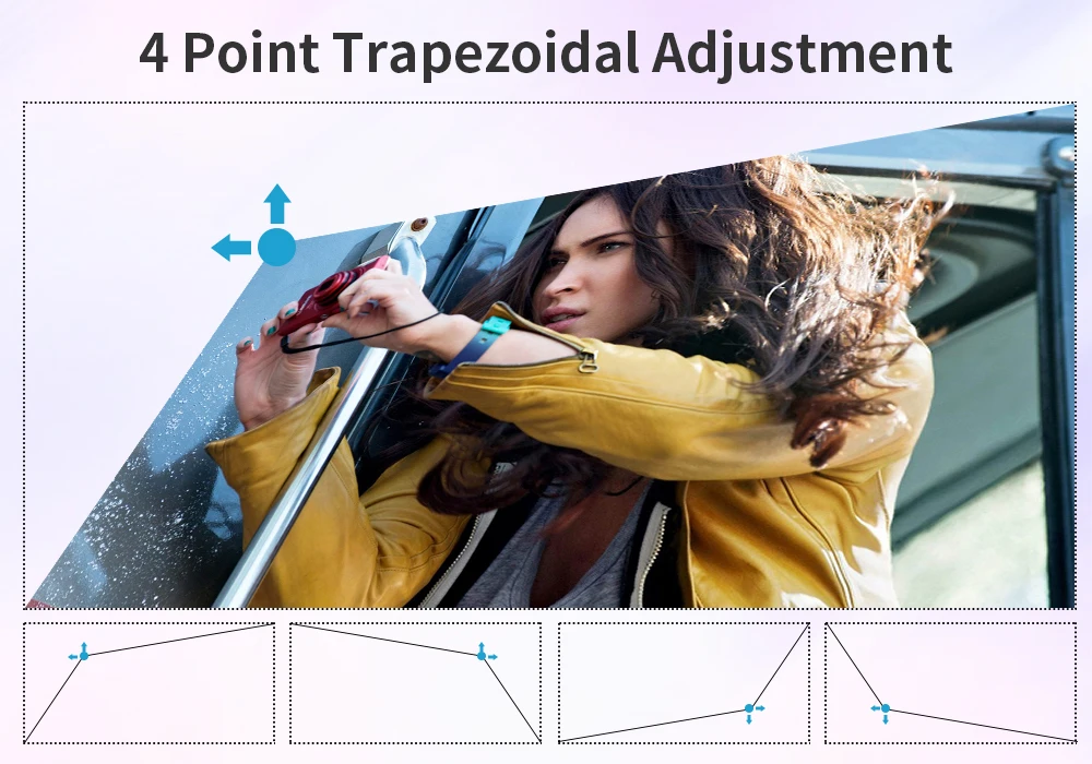 Вы можете откорректировать его в горизонтальном положении. Вам не нужно регулировать проектор, когда вы хотите смотреть фильмы на стене.
