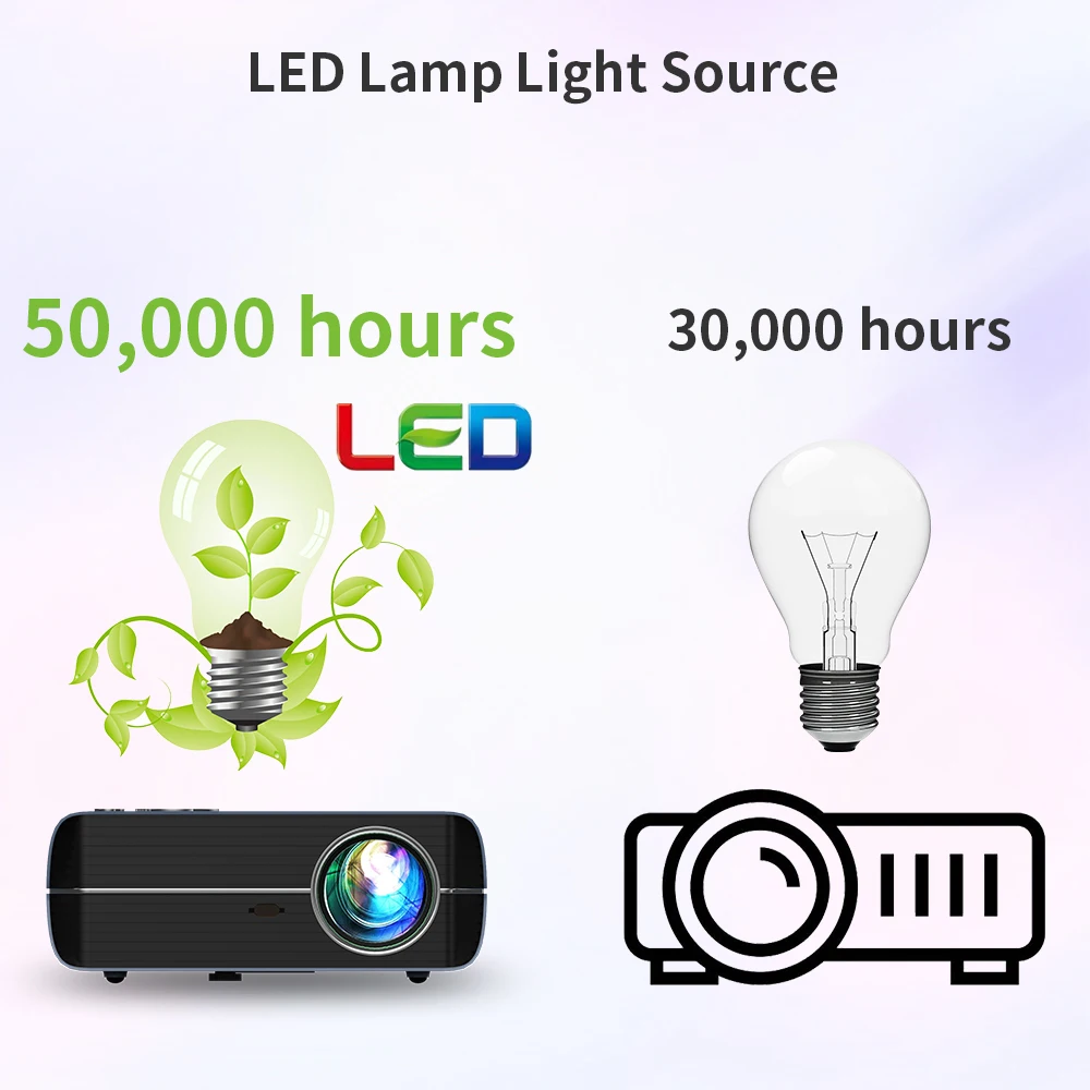 Источник света светодиодной лампы более мягкий, он может защитить ваши глаза. Он сохраняет высокую яркость изображения, лампа имеет более длительный срок использования.