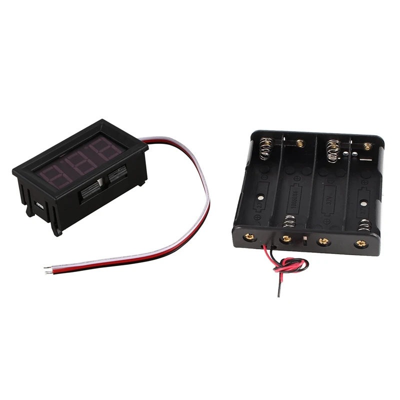 Мини вольтметр тестер цифровой тестер напряжения батарея постоянного тока 0-30 в красный авто автомобиль с 2 шт черный пластиковый держатель батареи
