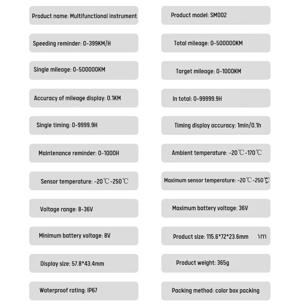 Description Цифровой дисплей, тахометр, часовой счетчик двигателя, автономный тахометр, измеритель скорости с вольтметром, датчик напоминания2. В связи с разной конфигурацией разных мониторов изображение не отображает фактический цвет товара. Спасибо!