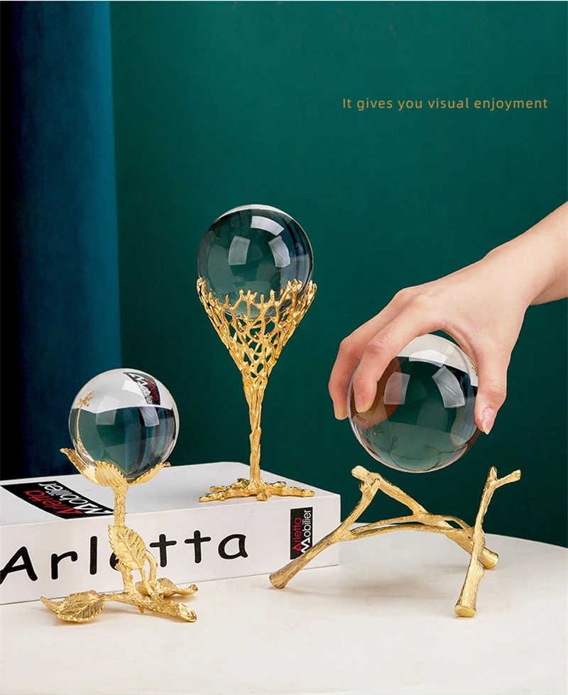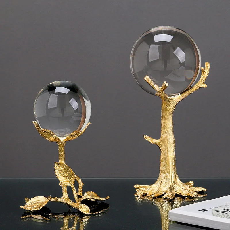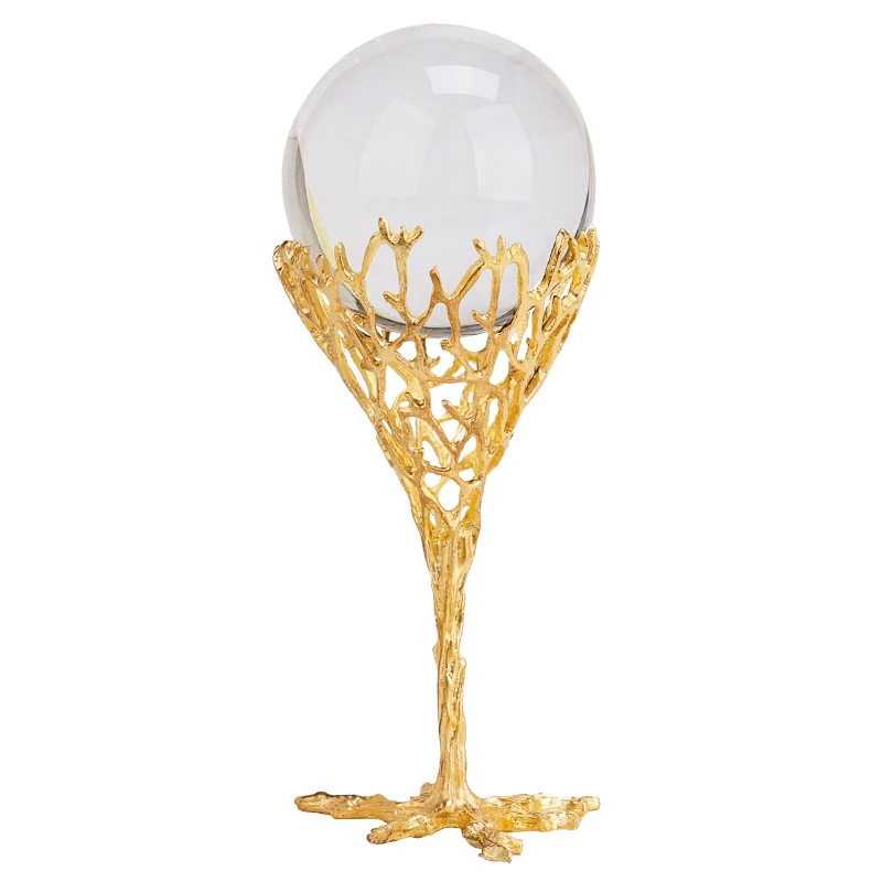 Кристально чистый хрустальный шар, сочетающийся с уникальными золотыми ветками, изысканный и красивый, и может легко создать ощущение атмосферы.