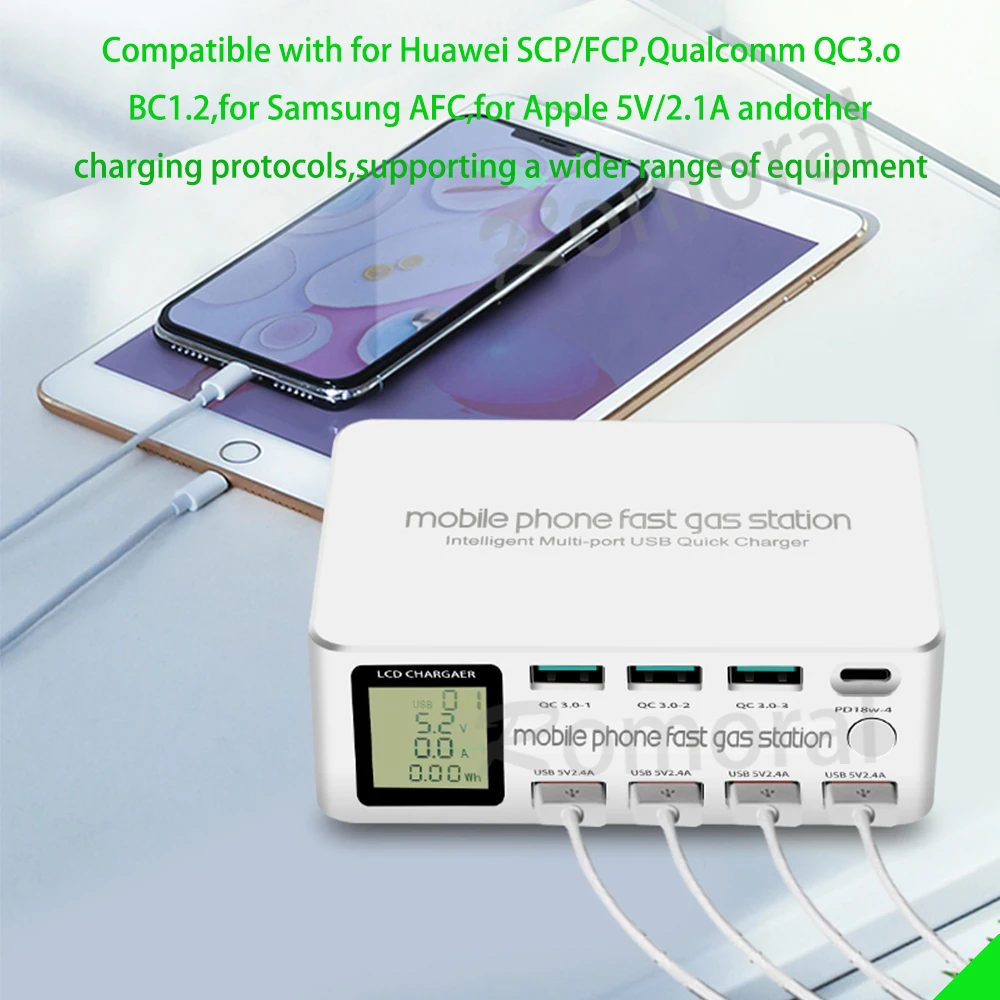 100 Вт 8 портов ЖК-дисплей Быстрая зарядка 3,0 USB зарядное устройство адаптер концентратор Тип C PD быстрое зарядное устройство для телефона для iPhone Huawei Samsung Xiaomi