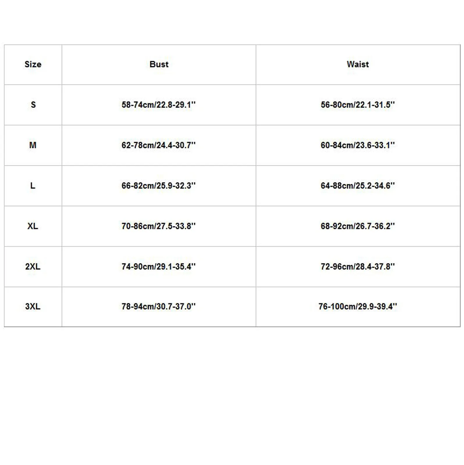 Посылка: нижнее белье-1 шт. Размер Бюст Талия S 58-74 см/22,8-29,1'' 56-80 см/22,1-31,5'' М 62-78 см/24,4-30,7 дюйма 60-84 см/23,6-33,1'' L 66-82 см/25,9-32,3'' 64-88 см/25,2-34,6 дюйма XL 70-86 см/27,5-33,8'' 68-92 см/26,7-36,2 дюйма 2XL 74-90 см/29,1-35,4 дюйма 72-96 см/28,4-37,8'' 3XL 78-94 см/30,7-37,0'' 76-100 см/29,9-39,4''