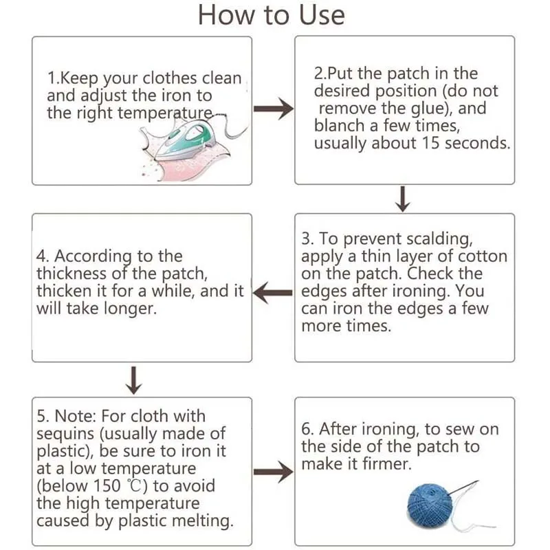 Высококачественная нашивка для утюга с теплом или пришивкой, детальная вышивка с изысканным и ярким внешним видом. Обновите свой костюм. Забавный и простой способ персонализировать одежду, сумки, костюмы и почти все, отличный способ выразить свою индивидуальность. Утюжок на заплатках полезен для сокрытия поврежденных или рваных пятен на вашей одежде и аксессуарах, отлично подходит для всех возрастов, мальчиков, девочек, мужчин, женщин. Используется для лоскутной дырки в джинсах, жилетах, рубашках, одежде, полотенцах, одеялах, куртках, сумках, рюкзаках и т. д. Будьте очень осторожны с полиэфирной тканью, так как нанесение высокого тепла, необходимого для глажки на заплатах, может сжечь ткань или привести к ее обесцвечиванию. Шелк и другие деликатные ткани не подходят для патчей.