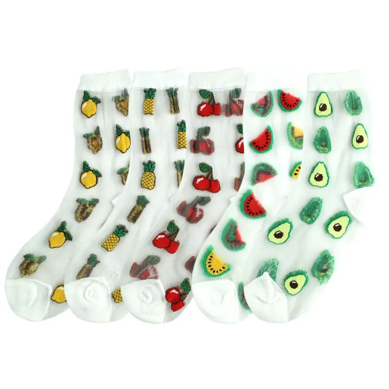 Женские прозрачные носки с фруктовым узором.