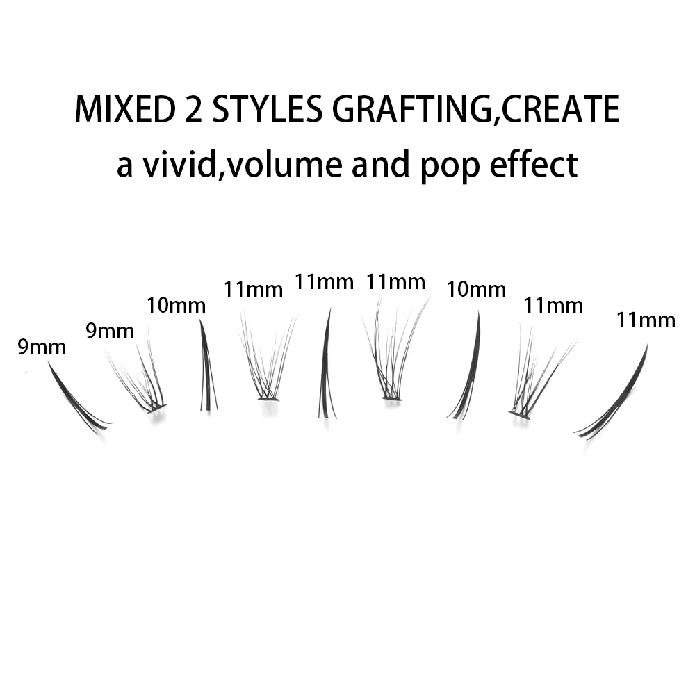 5 рядов, смешанные 2 вида стилей ресницы, форма и объем, предварительно сделанные объемные веерные ресницы, натуральные, долговечные, модные, инструмент для макияжа глаз