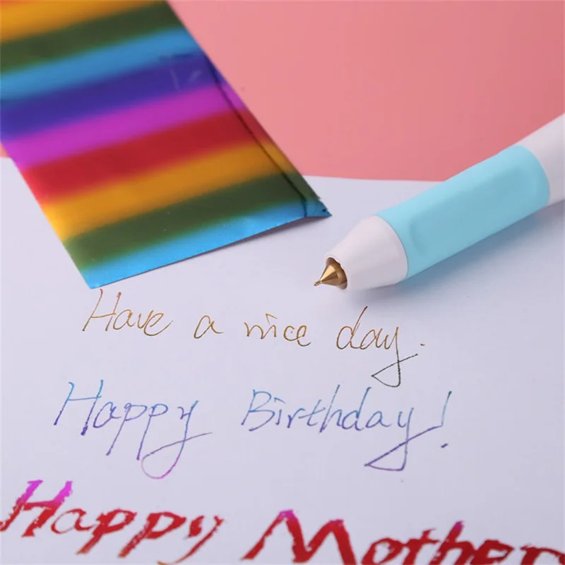 2. Нажмите переключатель в ручке, чтобы включить, и светильник в конце ручки включится;3. Пожалуйста, подождите 1-2 минуты, прежде чем ручка полностью нагревается;4. Выберите материал или поверхность, которую вы хотите фольгировать, и выберите блестящий цвет фольги;5. Поместите фольгу поверх материала, который вы запотеваете, и закрепите ее с помощью низкой клейкой ленты или магнитов;6. Прикоснитесь к кончику ручки к фольге и начните писать или рисовать, чтобы перенести фольгу на поверхность;7. Когда вы закончите, Снимите пленку, чтобы увидеть ваше удивительное творение!8. Убедитесь, что вы нажимаете переключатель на выключение и отсоедините ручки с фольгой от источника питания, позвольте остыть перед хранением.Советы безопасности для вашей ручки с фольгой:1. Всегда отсоединяйте ручки с фольгой, когда она не используется, и никогда не оставляйте ее без присмотра, когда она включена.2. Не прикасайтесь к металлическому кончику ручки с фольгой, так как это может привести к ожогам.3. Ручки с фольгой были разработаны для использования с определенной тепловой активированной фольгой.4. Будьте осторожны, когда вы оставляете наконечник ручки, когда он подключен, нагревается или остывает, чтобы избежать повреждения рабочей поверхности или материалов.5. Обязательно проверьте, является ли входное напряжение зарядного устройства DC5V, чтобы избежать повреждения продукта.Дисплей продукта: