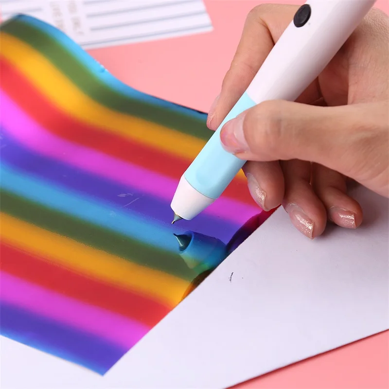 Питание от USBТонкая ручка с термостойким захватомМожет использоваться на бумаге, коже, пластикеЧтобы добавить блестящие рукописные чувства и мерцающие акценты к вашим проектам с помощью этой тепловой ручки с фольгой-не требуется машина для резки!Спецификация: