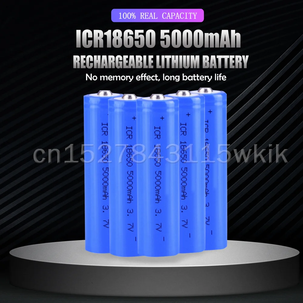 10-20PCS Real Capacity 3.7V 18650 5000mah Lithium Rechargeable Battery ICR18650 with Pointed (No PCB) batteries For Flashlight
