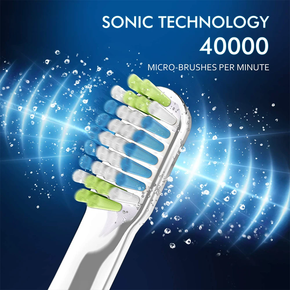 Благодаря мощной технологии ультразвуковой очистки вы получите тщательную очистку. 3D стереоскопическая щетина сделана из нейлона Dupont, подходит для топографии зубов для тщательной очистки десен и труднодоступных зон.