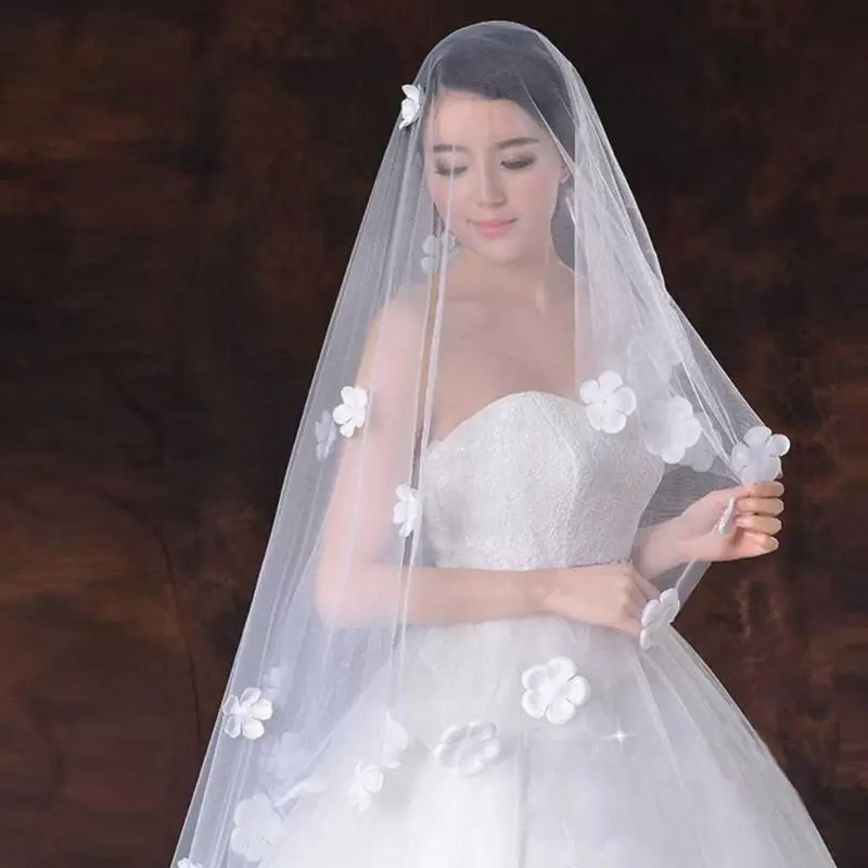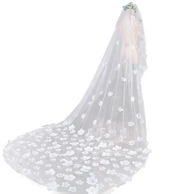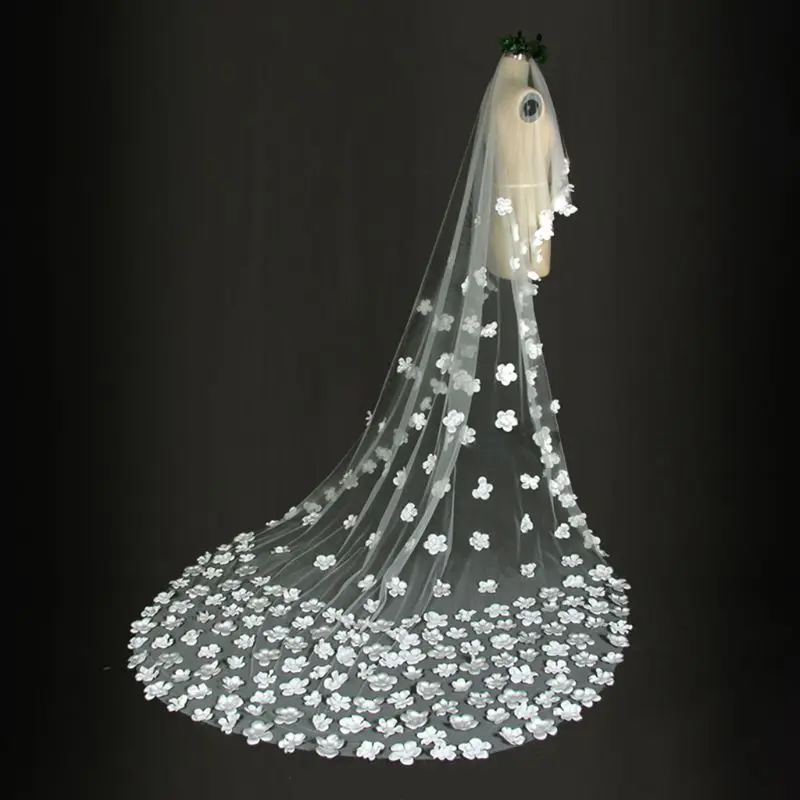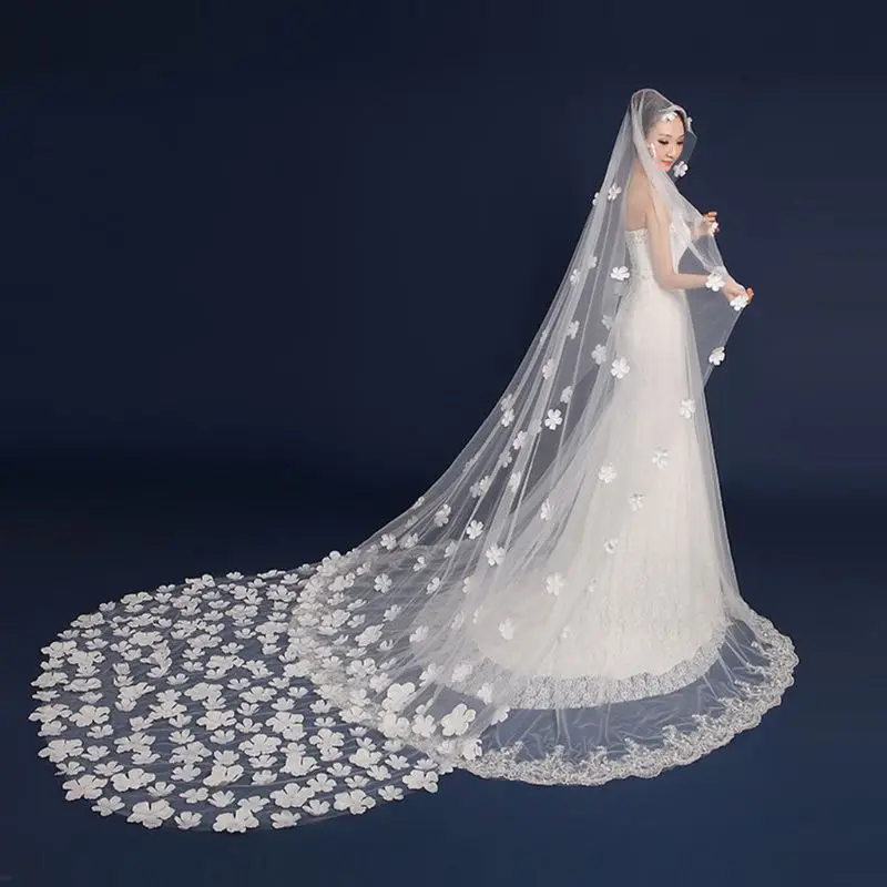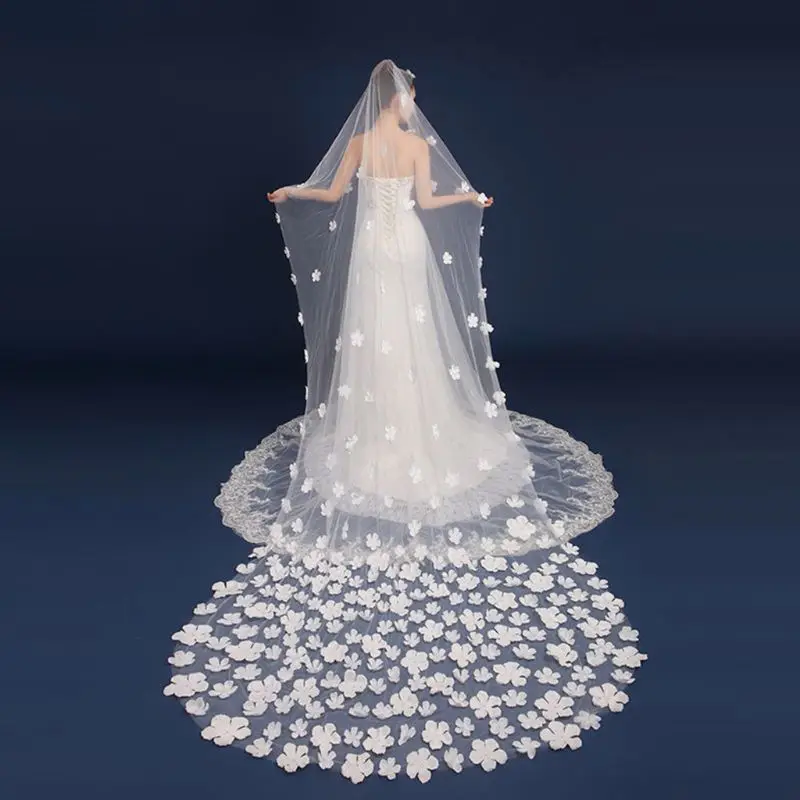 Однослойная Женская фатиновая ультра-Длинная свадебная фата со шлейфом романтическая нестандартная пятилепестковая Цветочная аппликация для невесты W0YA