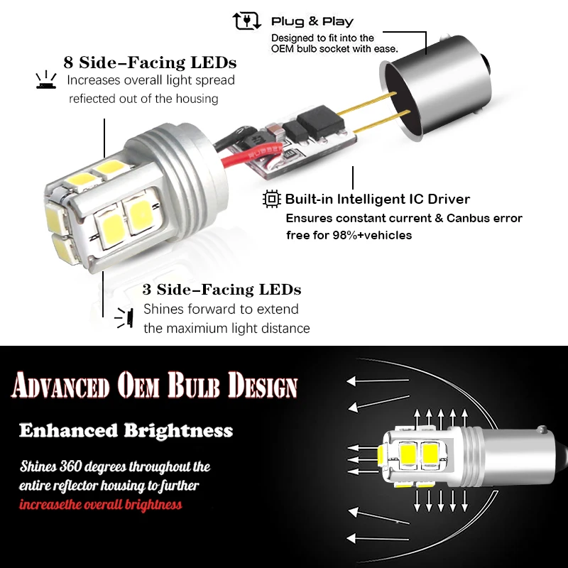 На этой странице представлена одна пара (2 шт.) эксклюзивного дизайна 10-SMD-3030 CAN-bus Error Free H21W BAY9s BA9S BAX9S светодиодные лампы в 6000K xenon белого цвета для автомобильных задних или парковочных огней, подсветка номерного знака, внутренняя карта, Купольные огни. Мы специально спроектировали эти светодиодные лампы с 360 градусным освещением, питанием от 10 штук 1,5 Вт каждый 3030 светодиодных излучателей, изготовленных с печатной платой CAN-bus и без полярного дизайна. Это означает, что он будет светиться ярче и работать как для отечественных, так и для импортных автомобилей. Установка очень проста, просто подключите и играйте, не беспокоясь о неосвещении, так как мы также разработали этот продукт, чтобы не быть полярным! Этот товар поставляется со встроенными нагрузочными резисторами Canbus, что означает, что он бесплатно * для большинства европейских автомобилей (таких как BMW, Audi, Porsche, VW, Mini, Smart, Mercedes, jaguar, Ferrari, Lamborghini, Bentley и др.).