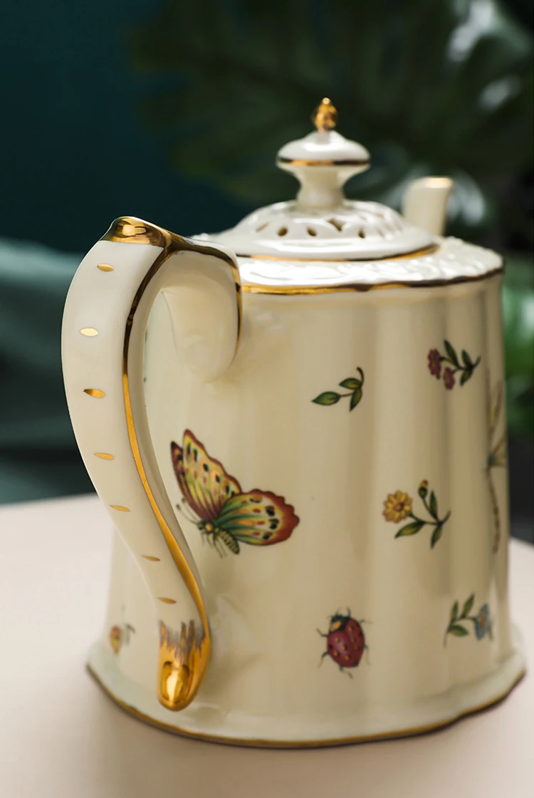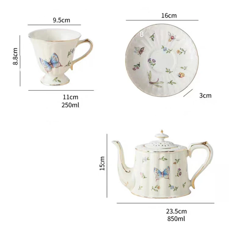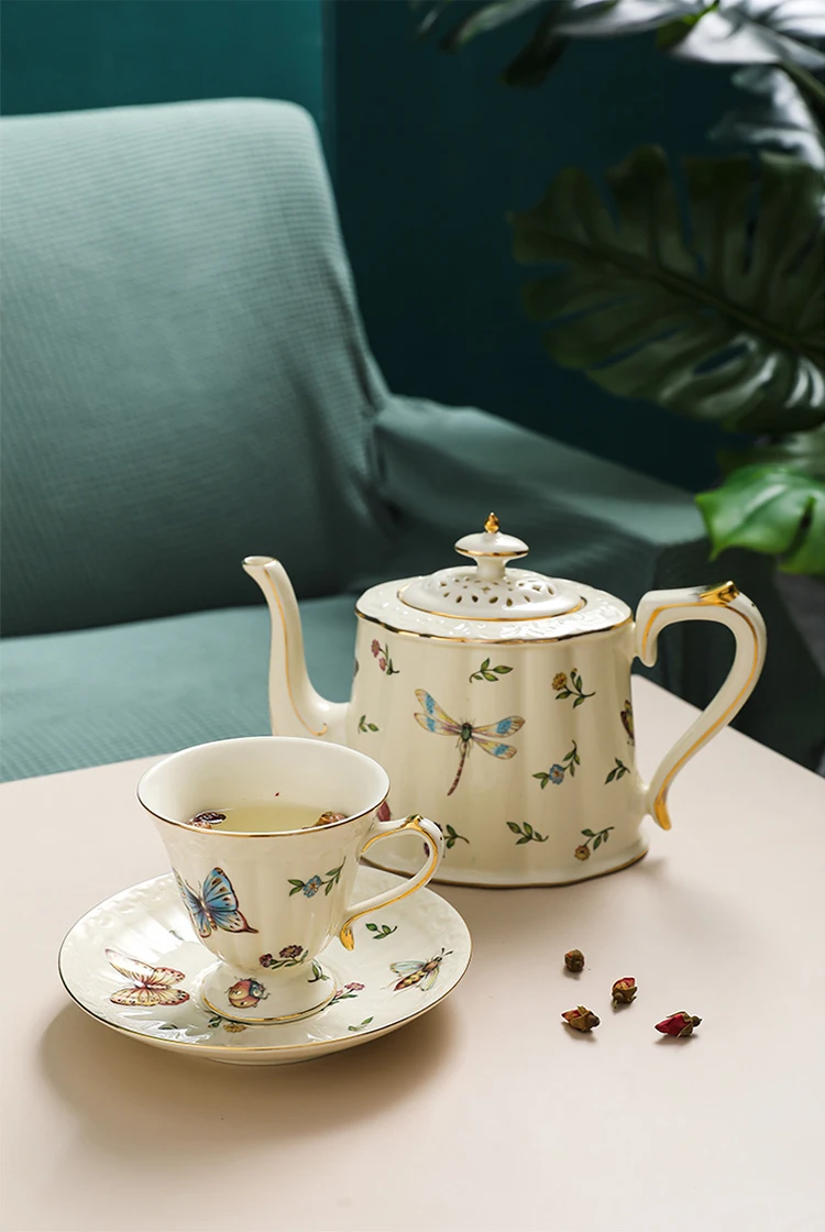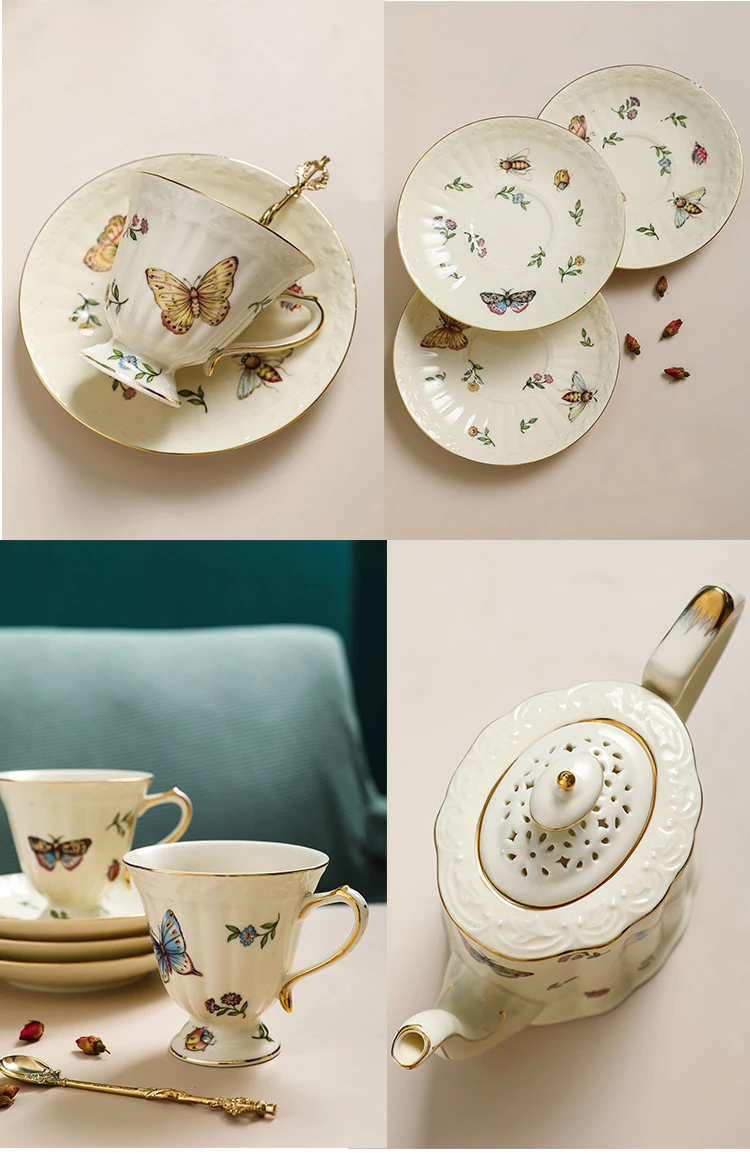 Французский винтажный Дворцовый стиль бабочка пчела цветочный позолоченный ободок чайная чашка и блюдце набор