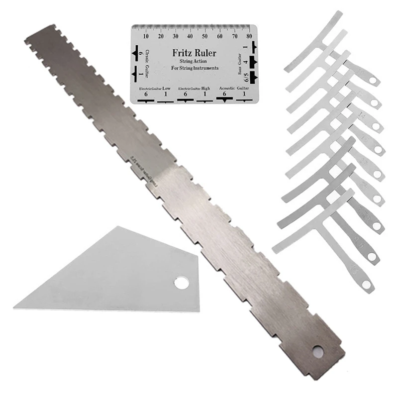 [Размер]: режущей кромки ножа линейка 420x37x0,35 см, Выравнивающая линейка 10,5x5,1x0,2 см, аккорд, дальнометрия правитель 8,5x5,4 см, 9 шт линейка 7,25 дюйма, 9,5 дюймов, 10 дюймов, 12 дюймов, 14 дюймов, 15 дюймов, 16 дюймов, 17 дюймов, 20 дюймов, 1 предмет каждого для дуги из металла, 1 шт для каждой дуговой сварки пленки, фланелевая сумка 8х43см