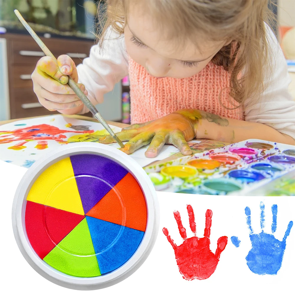 6 цветов, детская круглая ручная прокладка для печати, сделай сам, моющаяся губка для пальцев, чернильный коврик, рисунок граффити, игрушки, обучающая игрушка для детей