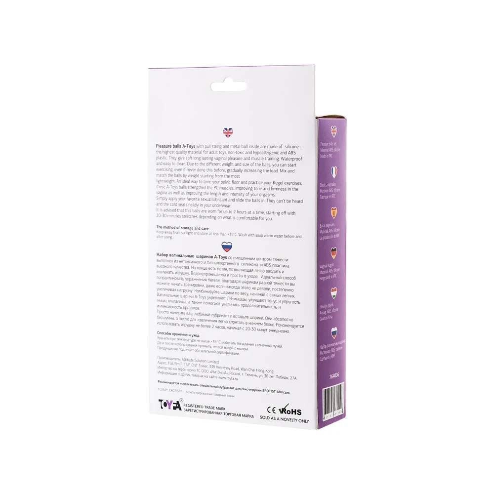 A-toys vaginal ball set with a displaced center of gravity is made of non-toxic and hypoallergenic silicone and high quality ABS plastic.
