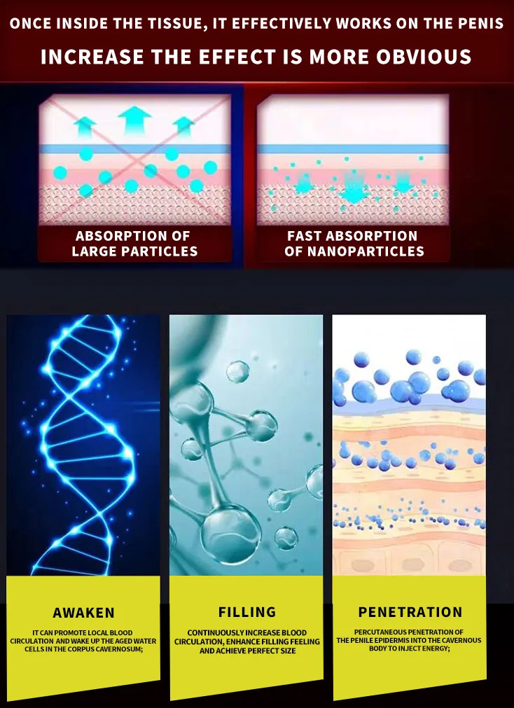 Six big selling point:1. Promote the cell division of sponge to realize the second development.2. Durable and hard,Make her irresistible to your dick 3. Make your penis bigger and thicker 4. Tackle impotence 5. Increase the length and hit her G-spot 6. High energy, long endurance and longer sex time after use