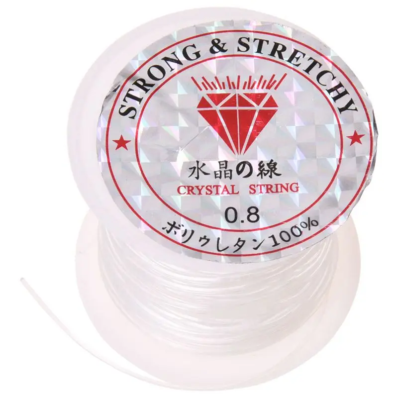Этот товар представляет собой рулон пряжа 0,8 мм (диаметр), идеально подходит для драгоценные камни, стекло, прозрачные бусины или с украшением в виде кристаллов, идеально подходит для изготовления браслета ассорти, состоящий из сережек и ожерелья Иллюзия ..