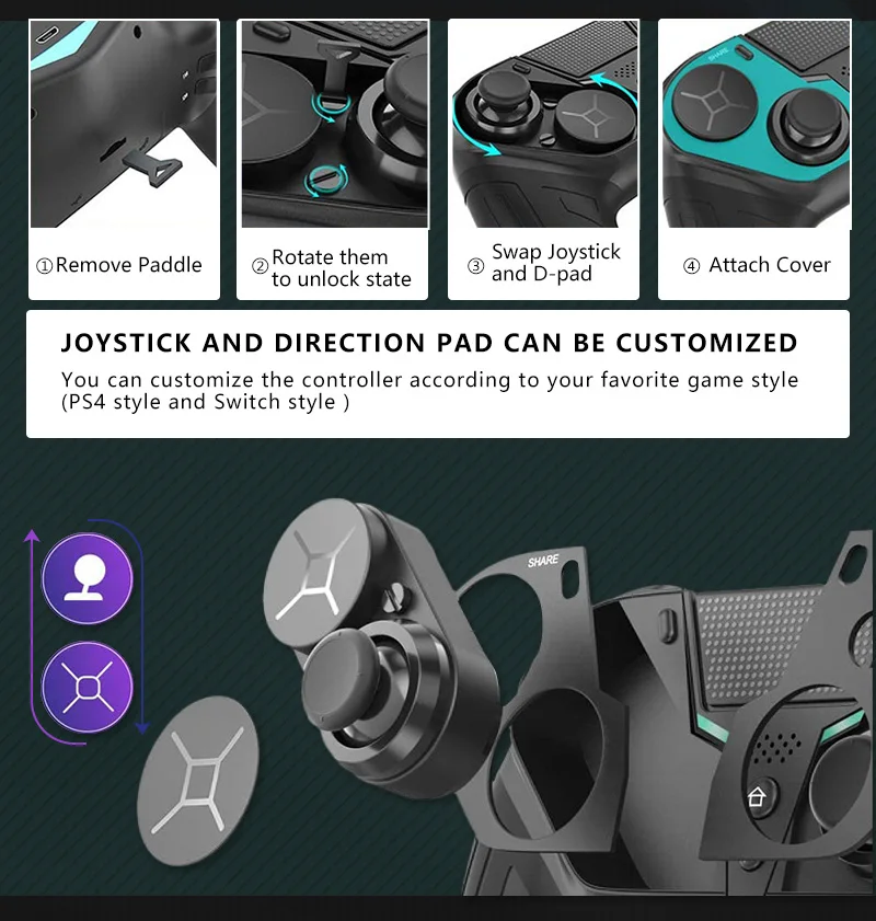 Используйте стандартную функцию PS4 (так же, как и оригинальную функцию, она может работать на ПК через драйвер, а Windows10 и Android 5,0 или выше без вождения)
