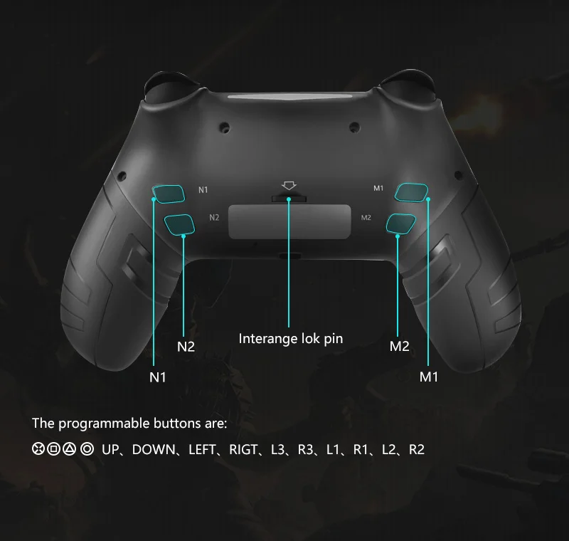 Для контроллера PS4 Беспроводная кнопка (Кнопка Turbo) + любая кнопка, вы можете начать функцию TURBO кнопки, любая кнопка Устанавливается как кнопка burst;