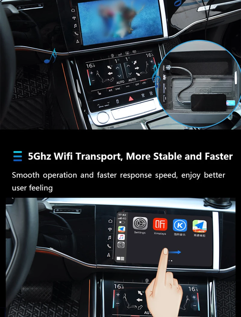 6. Встроенный модуль передачи 5G-WiFi гарантирует, что беспроводное соединение CarPlay является гладким, не застревает и бесперебойно.