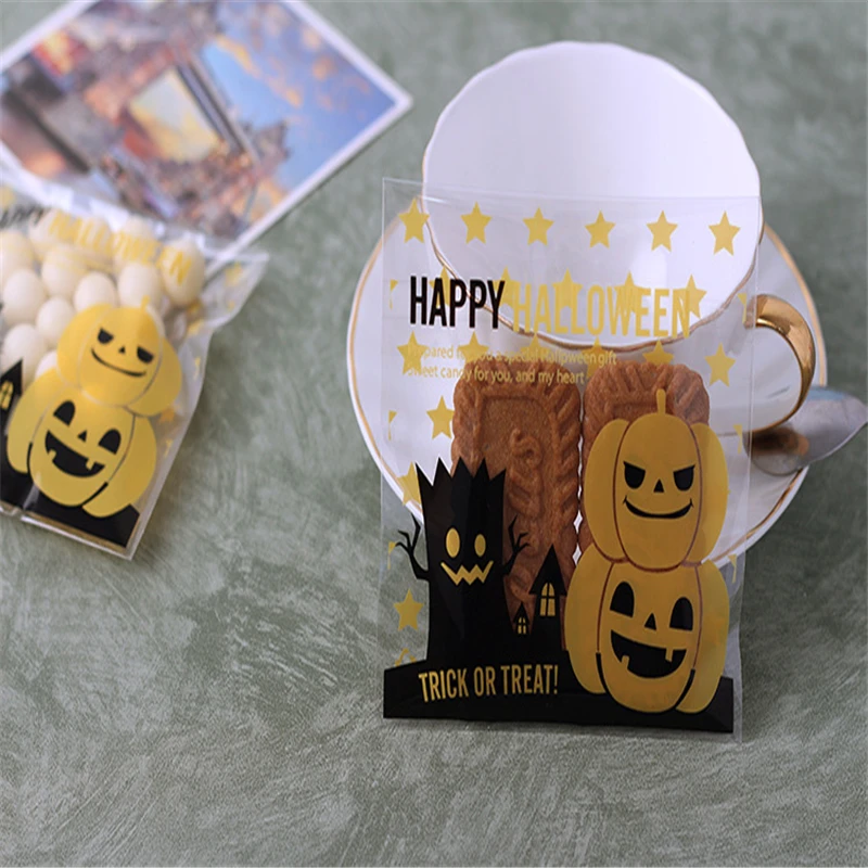 100 шт 2021 новый пакет для конфет на Хэллоуин, подарочные пакеты для печенья, пластиковые пакеты для печенья, вечерние украшения для Хэллоуина