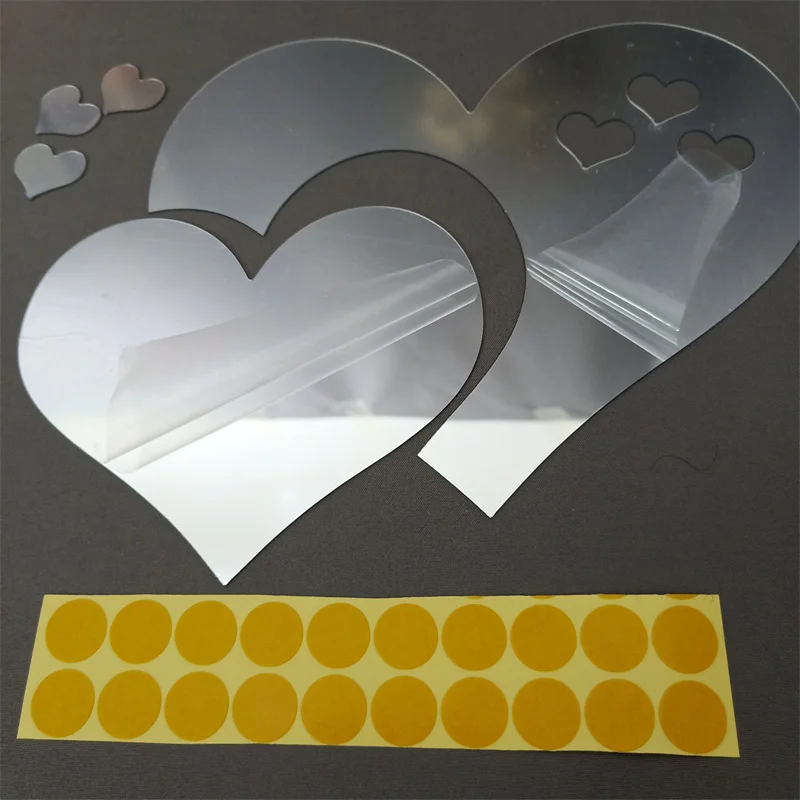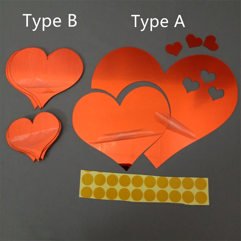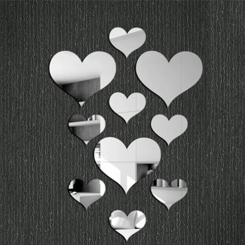 1 комплект зеркальных наклеек на стену (тип A 5 шт сердечки/Тип B 10 шт сердечки)