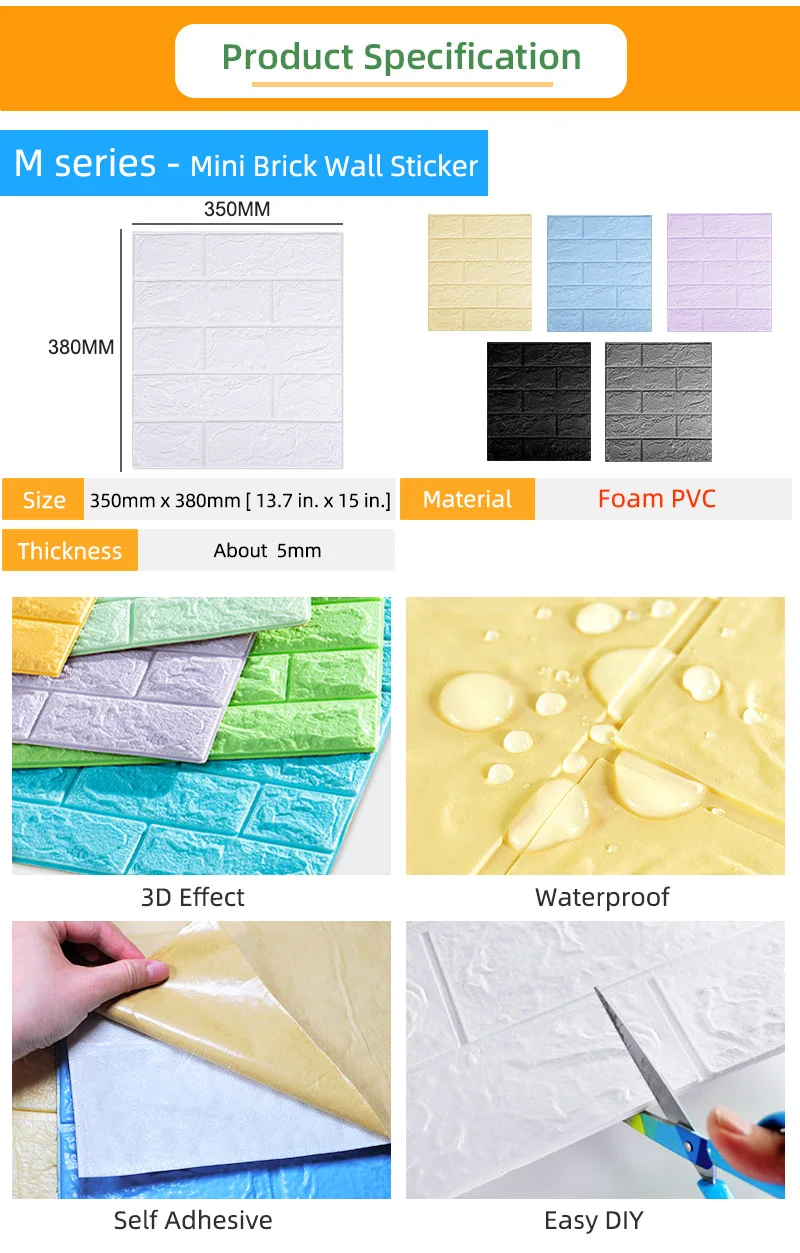 Характеристика:1. Трехмерная декоративная мягкая пена, анти-столкновения ребенка, забота о вашей семье в безопасности.2. Безопасность и защита окружающей среды, нетоксичный запах, подходит для семейного безопасного домашнего пространства.3. Реалистичный, естественный эффект кирпичного узора, простой и современный стиль.4. Бесплатный DIY, простой самоклеящийся дизайн, установка, повседневный коллаж, произвольный крой.5. Сравнение обоев с улучшенным эффектом шумоподавления.Спецификация:Размер и материал:Тип А: 30 см x 30 см [3D ПУ/ПЭТ и алюминиевая фольга]Тип-М: 35 см x 38 см [3D пена пвх]Способы установки:Приклейте поверхность с адгезией, прикрепите непосредственно к стенам, керамикеПлитки, окна, экраны, зеркала и т. Д.Тип применения: самоклеющийсяСъемный Тип: снимаемыйСтирка: ДаВнимание:Пожалуйста, купите достаточное количество товара, чтобы убедиться, что товар поступает из одной партии, чтобы избежать разницы в цвете.О проблеме хроматической аберрации:Будет небольшая разница в цвете между реальным предметом и изображением. Светильник отличается, угол отличается, и мобильный телефон или компьютерный монитор будут иметь небольшое влияние.Флуоресцентный