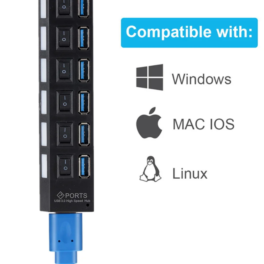 1. Корпус для суперскоростного 3,0 порта к компьютеру с помощью этого 7-портовый usb-хаб