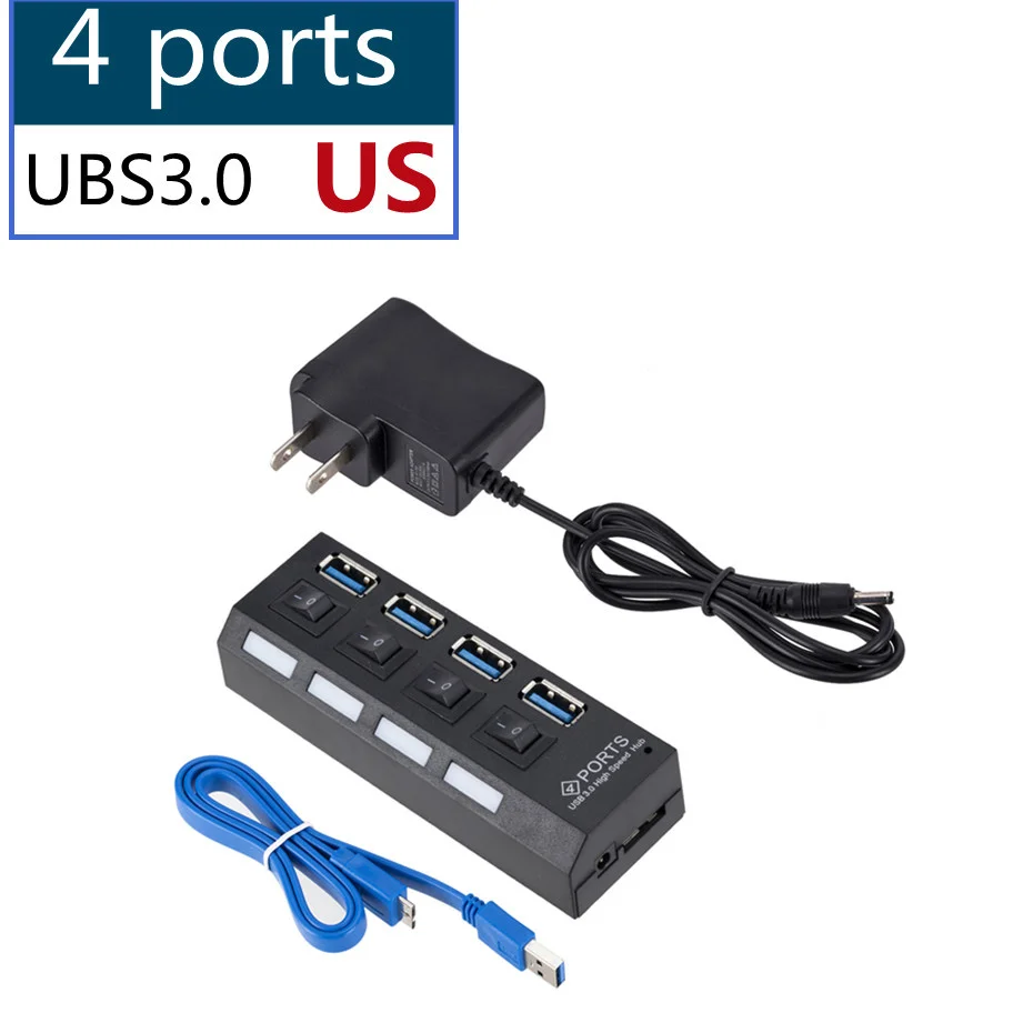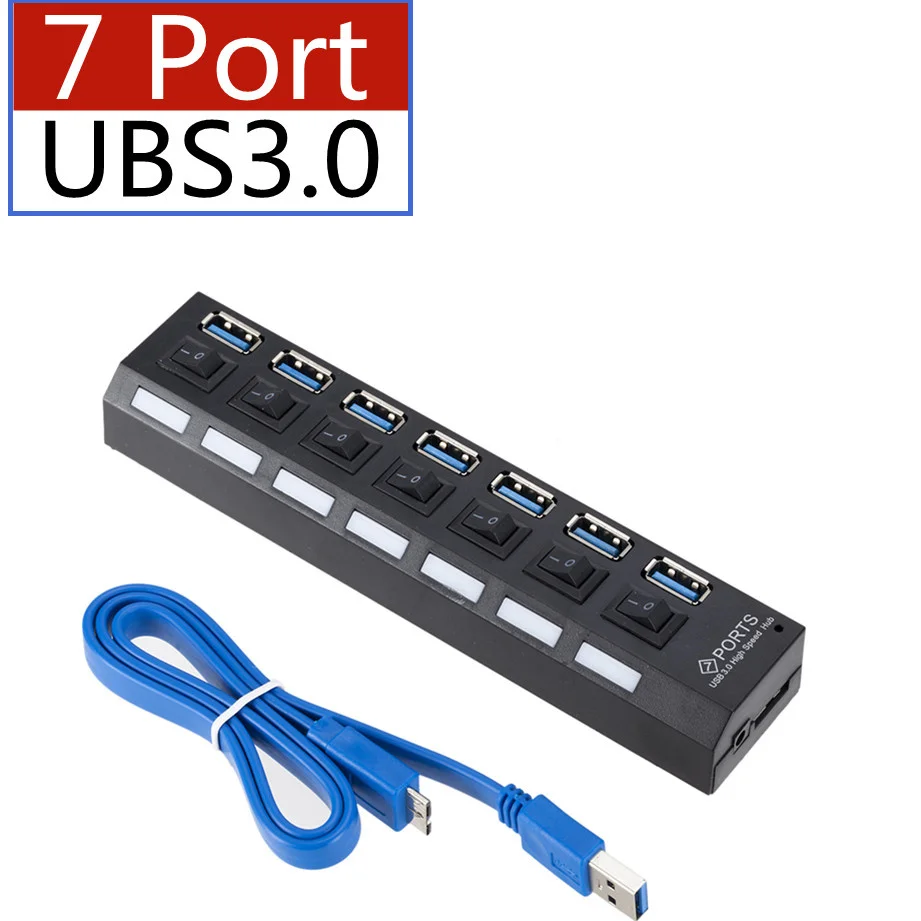 USB 3,0 концентратор usb-хаб 3,0 Мульти USB сплиттер 3 Hab использовать адаптер питания 4/7 порт несколько экспандер 3,0 USB3 концентратор с переключателем для ПК