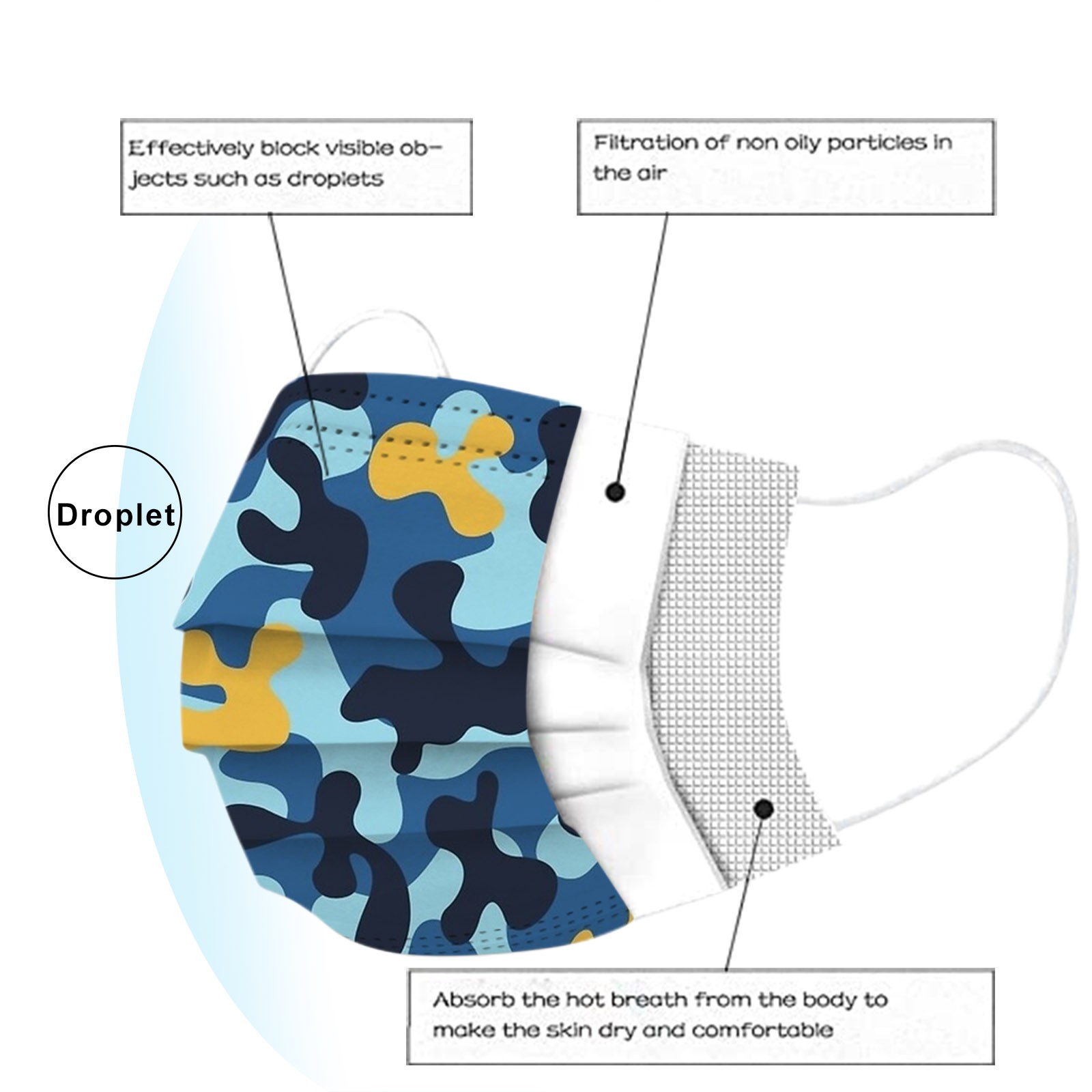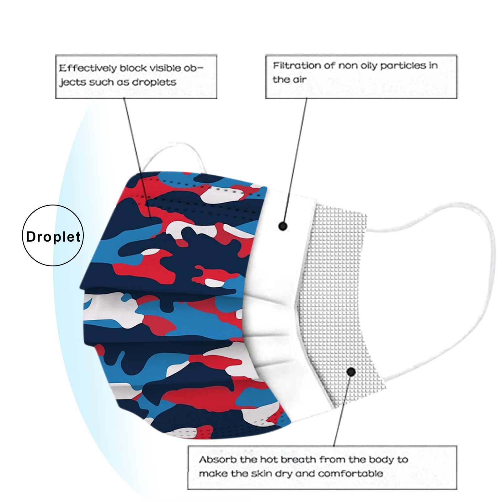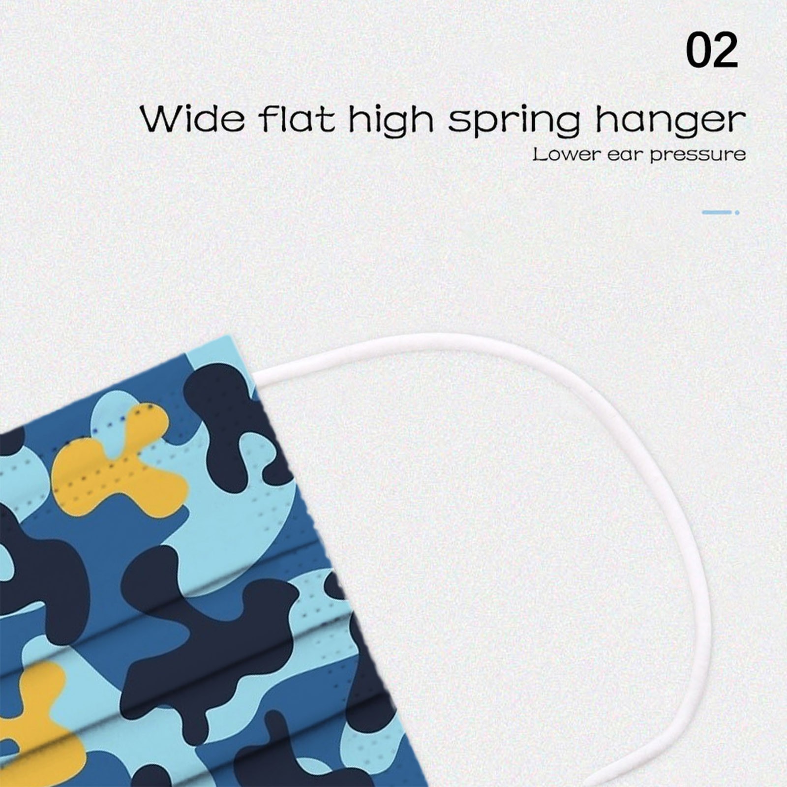 3 слоя Нетканая одноразовая маска изготовлена из 3 слоев нетканого материала, он безопасен для здоровья и безопасный для вас, чтобы использовать. Дышащий материал и милые узоры, что делает его полезным и модным. Специальный 3 слоя из нетканого материала, дизайн, обеспечивает некоторые меры защиты от пыли, автомобильный отходящий газ, пыльцу и т. Д. Эластичная петля уха позволяет легко снимать и надевать цепочку и не давит на уши. Маникюрный салон или любые другие области, где может потребоваться защита