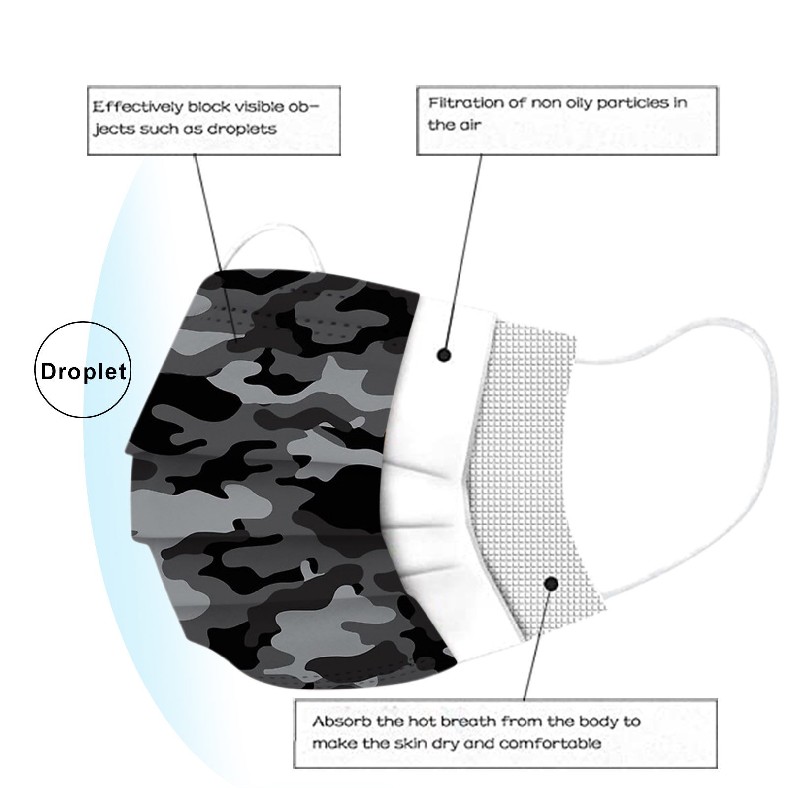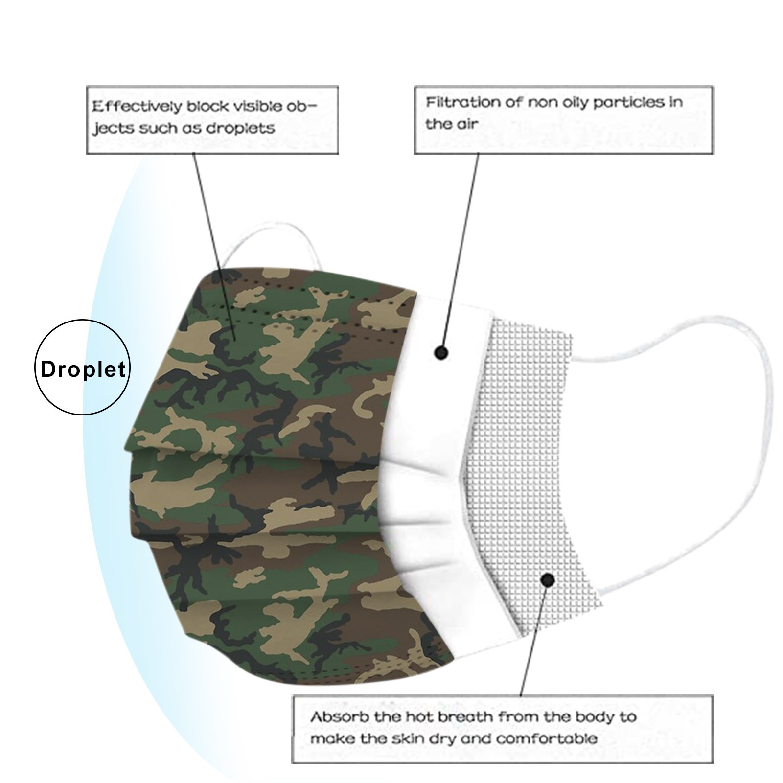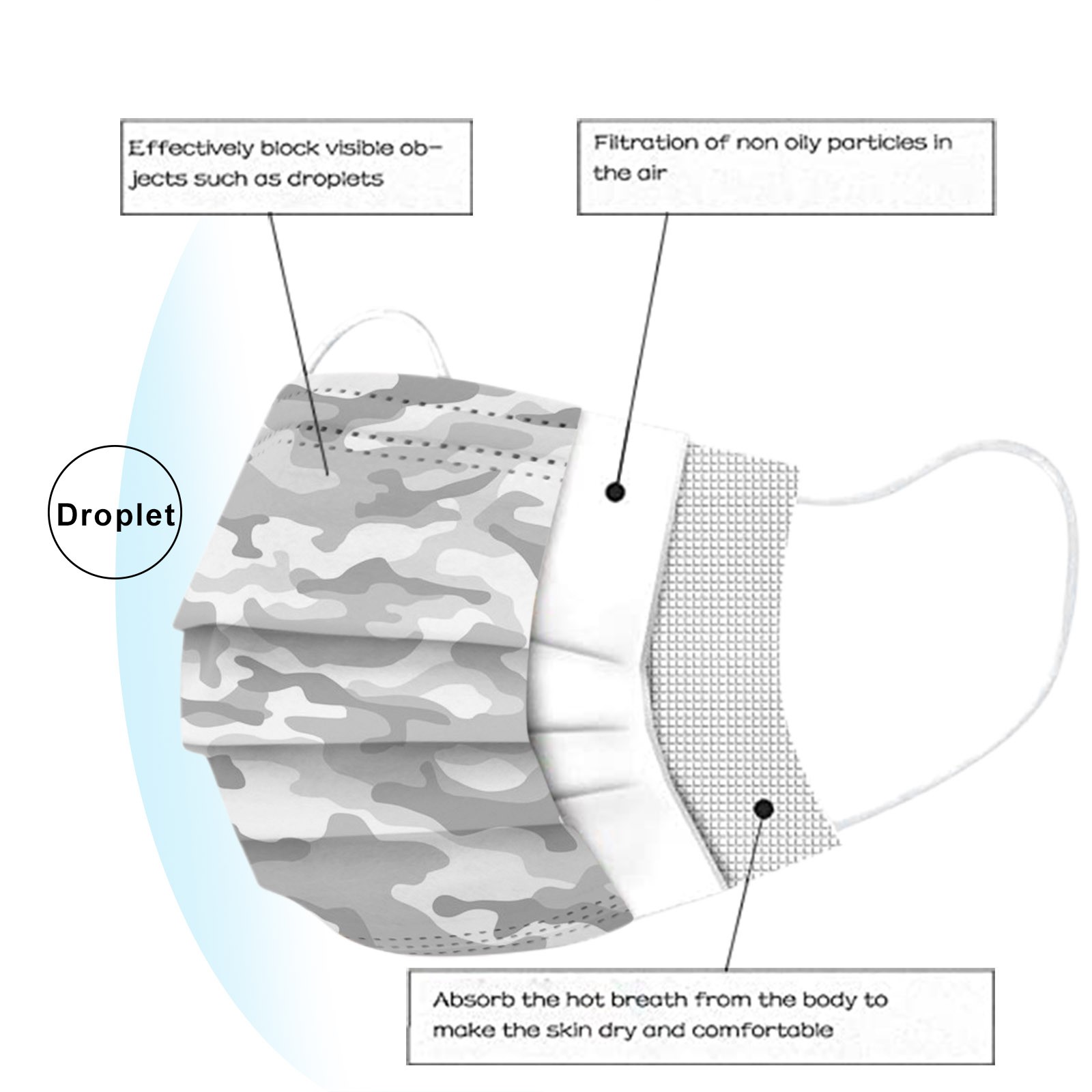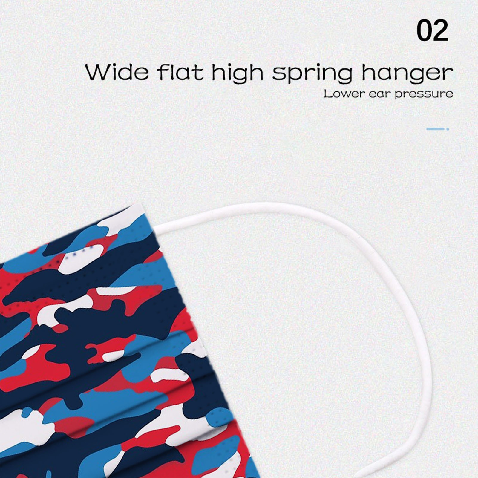 3 слоя Нетканая одноразовая маска изготовлена из 3 слоев нетканого материала, он безопасен для здоровья и безопасный для вас, чтобы использовать. Дышащий материал и милые узоры, что делает его полезным и модным. Специальный 3 слоя из нетканого материала, дизайн, обеспечивает некоторые меры защиты от пыли, автомобильный отходящий газ, пыльцу и т. Д. Эластичная петля уха позволяет легко снимать и надевать цепочку и не давит на уши. Маникюрный салон или любые другие области, где может потребоваться защита