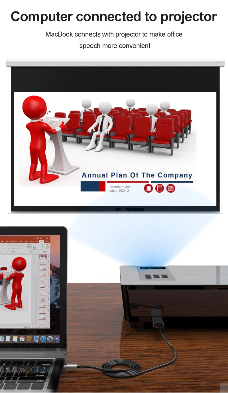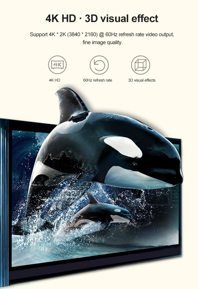 * Хорошо работает с USB-C ноутбуками/смартфонами и поддерживает передачу сигнала 4K @ 60Hz HD.