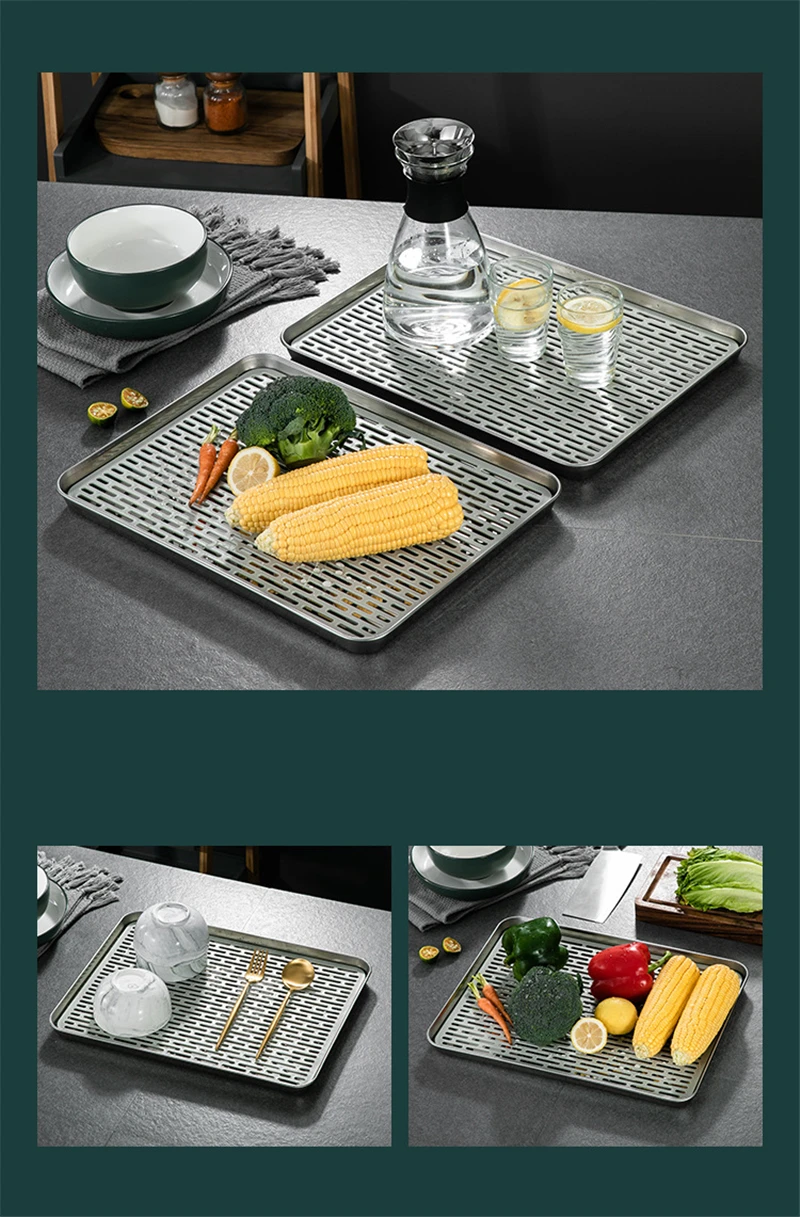 4. The square plate and the drain plate can be used in combination, and can also be used separately, which can hold more items.