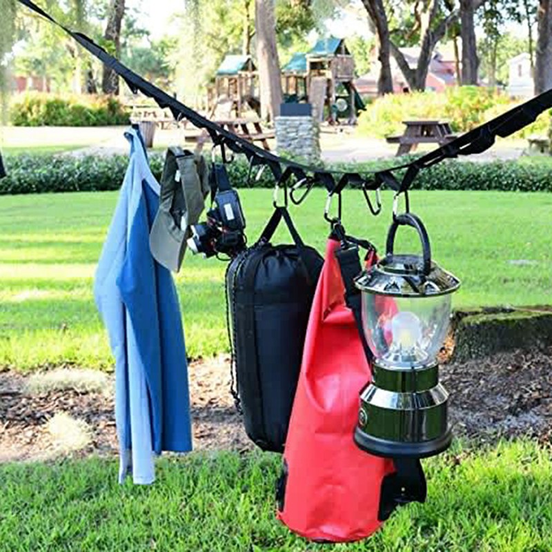 Подвесной органайзер: подвесная веревка состоит из 19 отверстий для крючков (вы можете выбрать, подходит ли сумка для покупок, крючок D/Крючок для альпинизма), Петли тщательно предотвращают попадание крючка в центр, чтобы вы могли щедро повесить крепления в лагерь. Ремни для хранения кемпинга обеспечивают вертикальное хранение для кемпинга в лесу/кухне/саду-висят ремни между двумя деревьями, и у вас будет удобный способ повесить ваши Кемпинг/палатки.