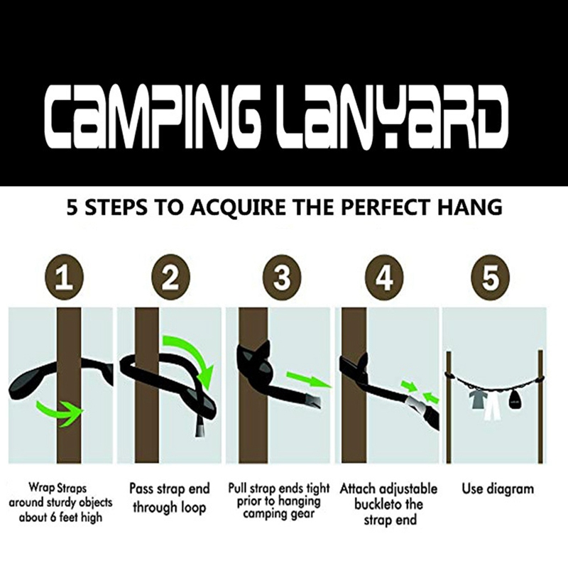 Простота использования: Возьмите с собой 3-таблице Согласно длине стопы лагерь Организатор ремня с большим деревом, туго затягивается, И затем получите 10 футов в длину ремешка рядом с деревом и соедините с двумя лямками к самой длинной застежкой на пряжку или повесить одну сторону ремешка с вертикальными толстыми филиал