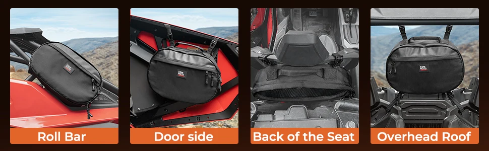 Поясная сумка может быть установлена или размещена в любом положении на автомобиле, например, завязывается на боковую заднюю Рулонную планку (наклонную), заднюю горизонтальную Рулонную планку, набивается под сиденье или помещается в отсек для хранения на автомобиле
