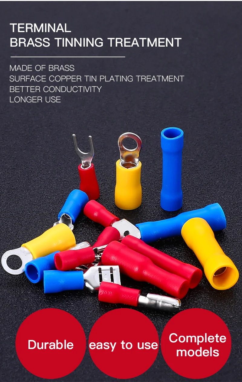 180 шт. 0,5-6 мм2 BV SV FRD MPD RV круглая Вилка Лопата терминал изолированный Кабельный соединитель провода обжимной стык латунь ПВХ материал набор
