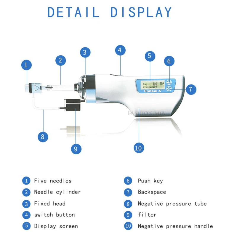 Регулируемая глубина впрыска, дозы, скорость и интенсивность всасывания.