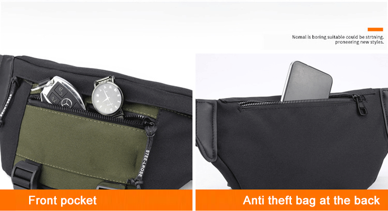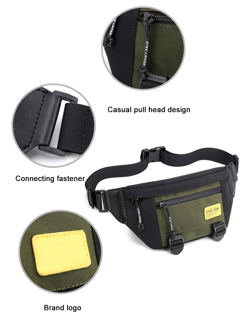 Men Bag The beautiful lightweight bag has adjustable belt and zipper pockets, light and practical