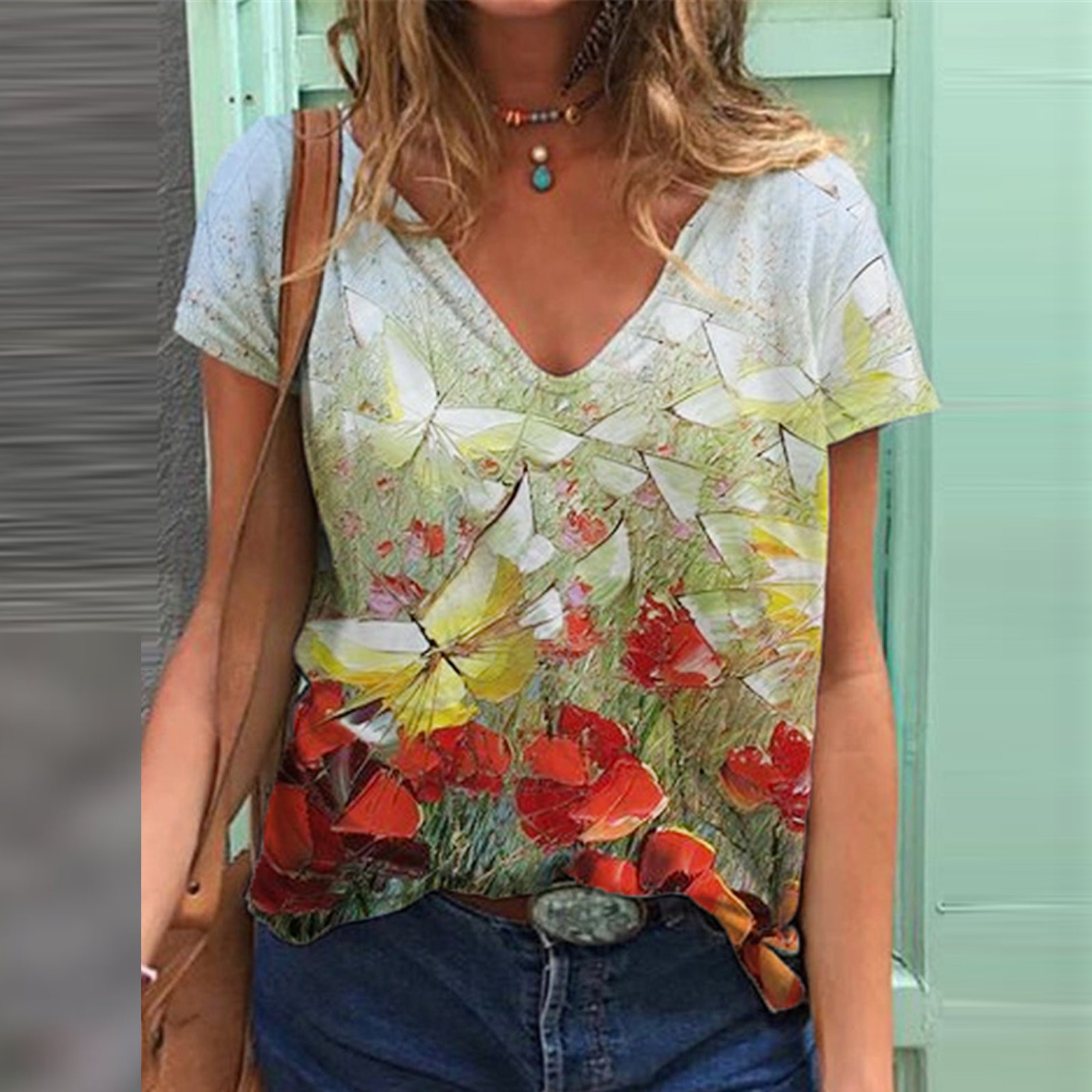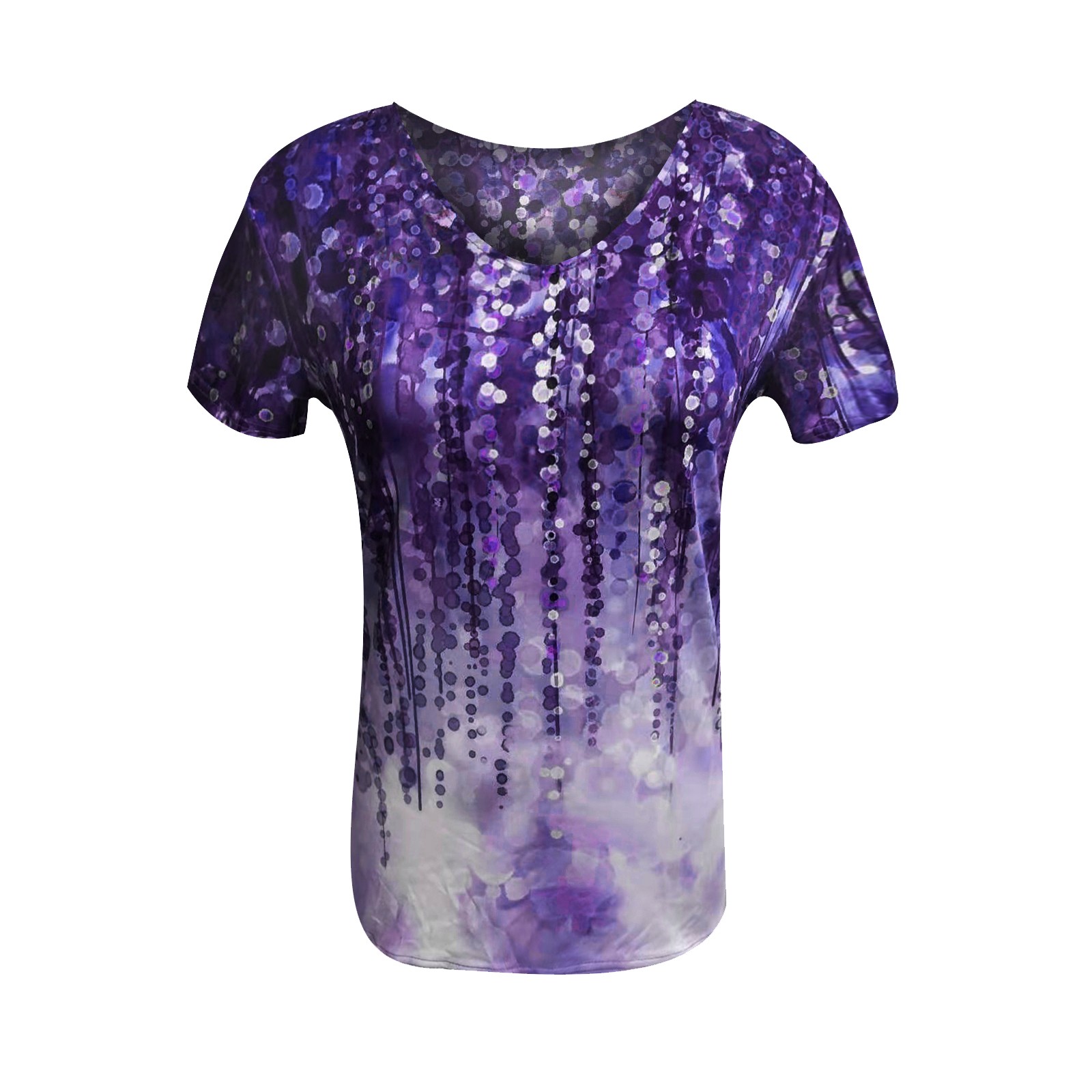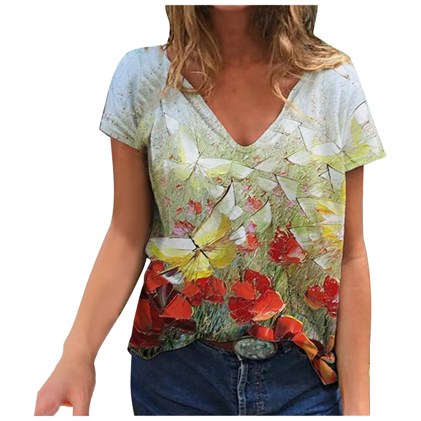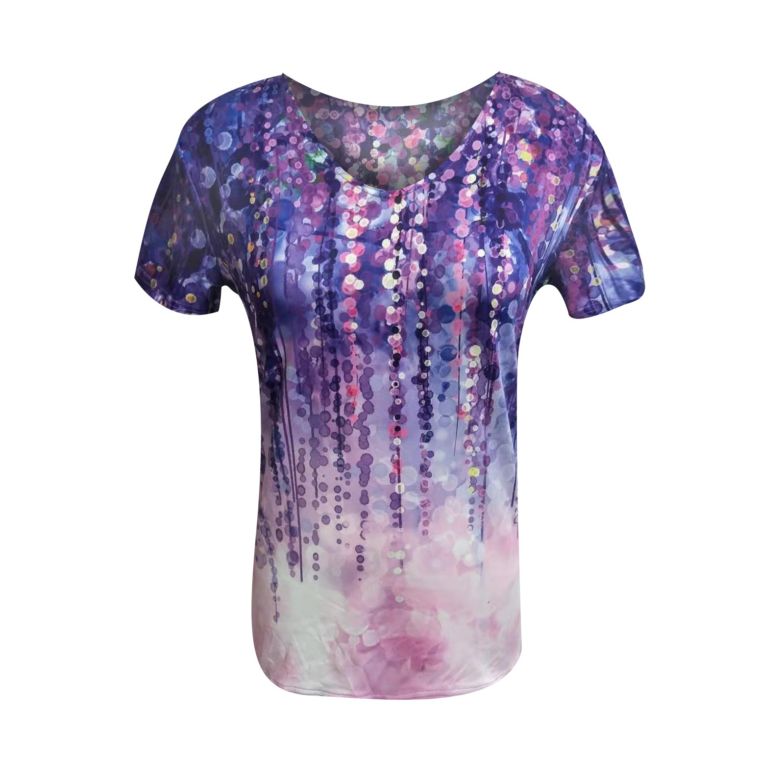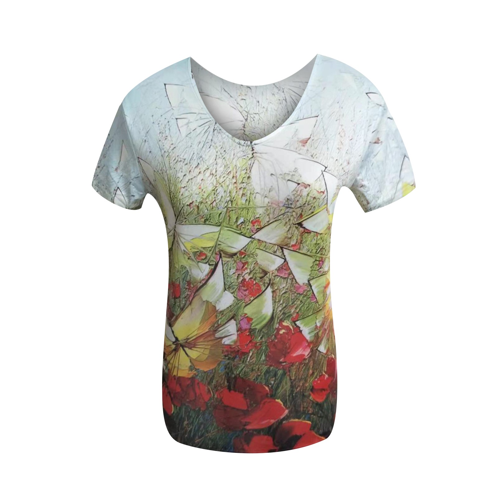 Женские повседневные Модные свободные ослепительные топы с v-образным вырезом и принтом с короткими рукавами